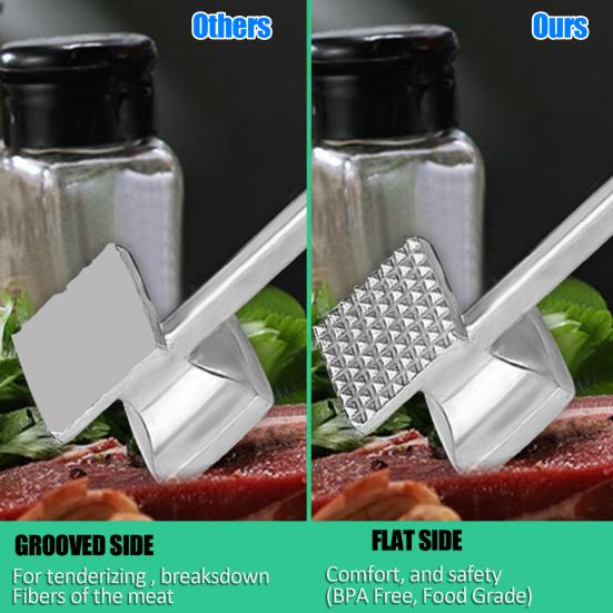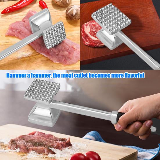 Этот двусторонний молоток позволяет раздавить мясо, чтобы ускорить приготовление, или сделать стейк мягким, чтобы он таял во рту.
