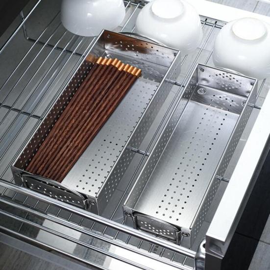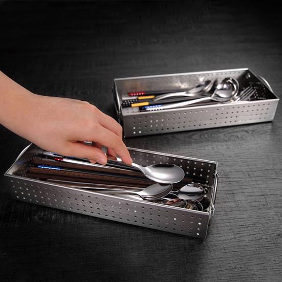 Прочная конструкция из металлической проволоки: Этот каркас для хранения столовых приборов, изготовленный из высококачественной стали, отличается долговечностью и элегантным современным эстетическим видом.. Легкая сетчатая конструкция противостоит скоплению грязи и воды, обеспечивая простоту обслуживания и долговечность.
