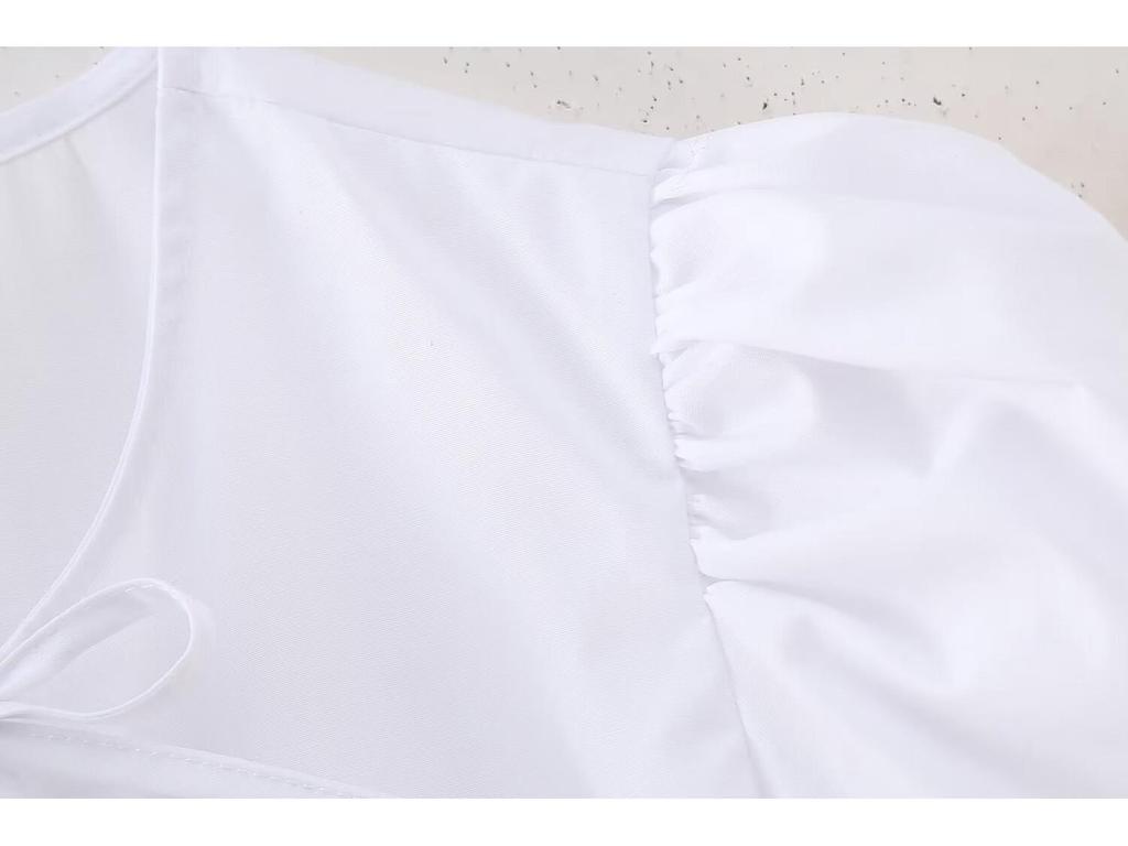 Откройте для себя идеальное сочетание стиля и комфорта с этим модным женским топом, созданным для весенней уличной моды 2024 года.. Этот топ, изготовленный из высококачественного полиэстера, отличается очаровательной шнуровкой и пышными рукавами, которые элегантно передают суть современной моды.. Короткие рукава и круглый вырез добавляют нотку непринужденной изысканности, что делает его универсальным выбором для любого случая.