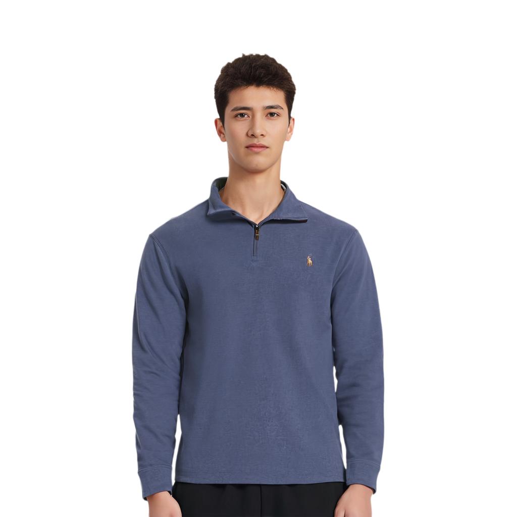 Polo Ralph Lauren однотонный свитер с воротником-стойкой и застежкой-молнией на половину длины, с длинным рукавом, мужская толстовка, синяя 710877001-004