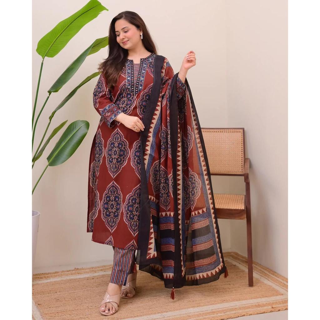Праздничный костюм Курти Сальвар Индийский женский топ Туника Курта Брюки Дупатта Комплект Платье VFP-1849a