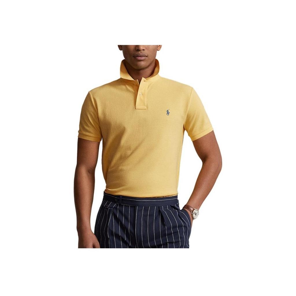 Polo Ralph Lauren FW23 Однотонная вышитая футболка-поло с коротким рукавом и вышитым логотипом, унисекс, желтые MNPOKNI1N822448-730