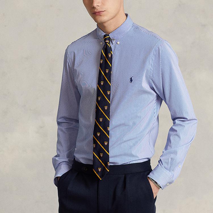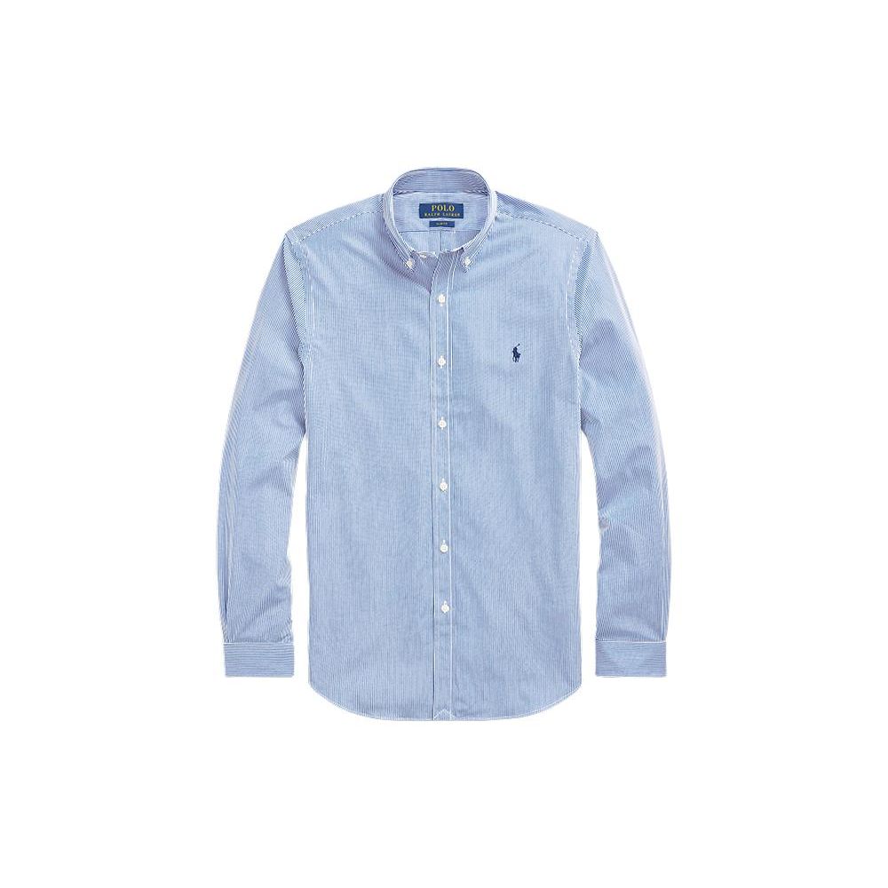 Polo Ralph Lauren FW22 Полосатая повседневная приталенная рубашка с длинным рукавом Мужские рубашки синего цвета MNPOWOV16822117-400