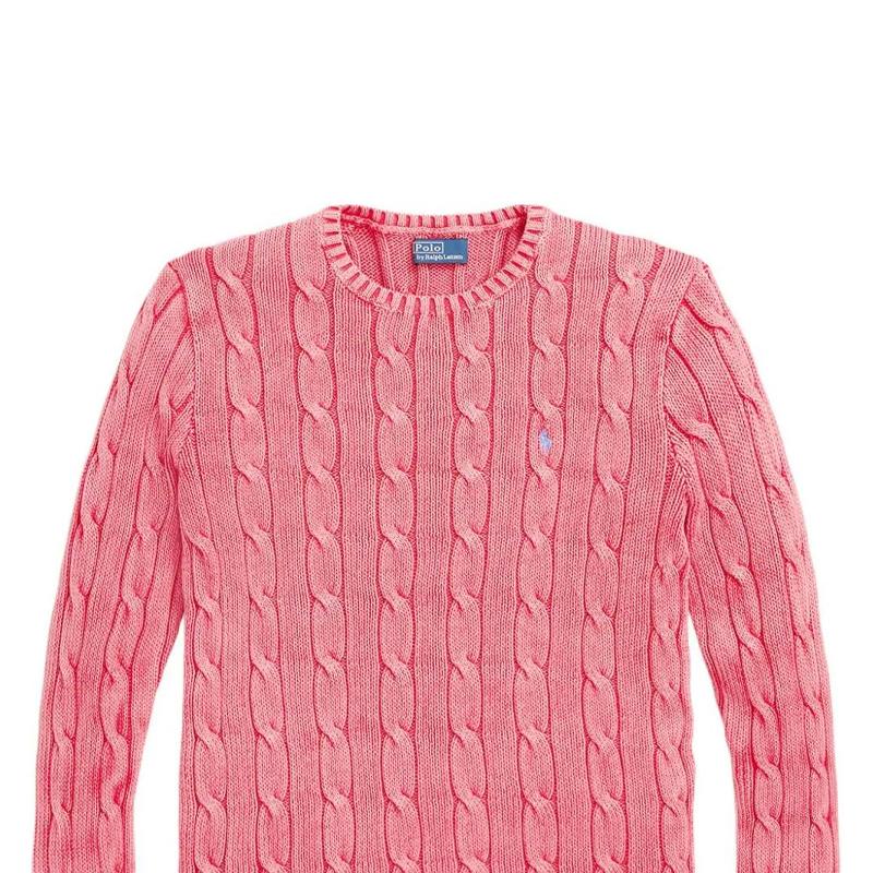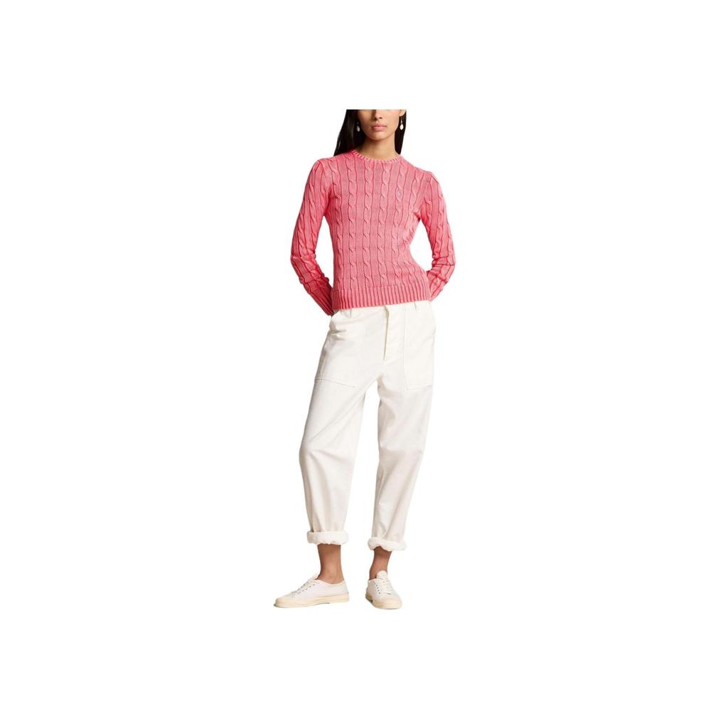 Polo Ralph Lauren круглый вырез горловины полосатый однотонный тонкий женский свитер с длинным рукавом кораллово-розовый 211935303-001