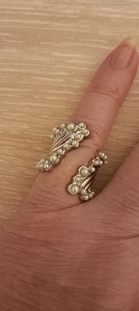 Отвалилась одна жемчужина когда стала доставать из пакета. Кольцо размер на 17,5.если раскрыть, то аккуратно что бы не осыпались оставшиеся жемчужины