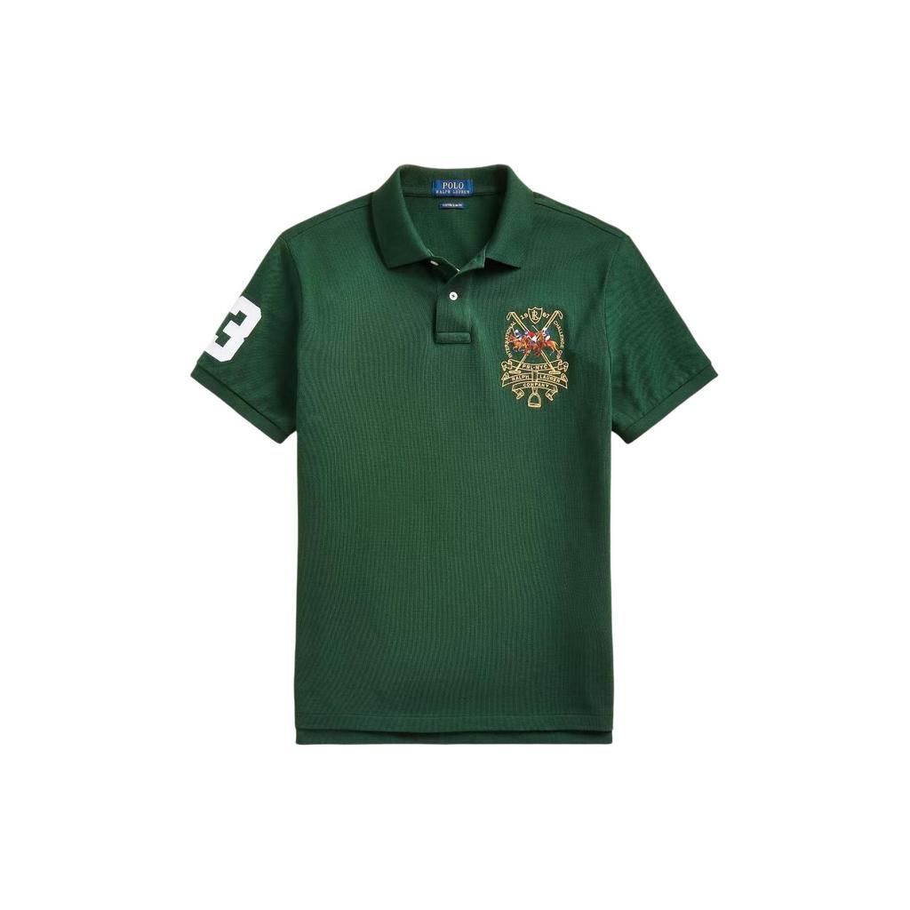 Polo Ralph Lauren Logo Вышитый Повседневный Трикотажный Поло с Коротким Рукавом Мужские Поло Рубашки Темно-Зеленый 710807546-005