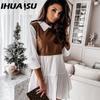 IHUASU Модное женское кожаное платье в клетку мини-платье в стиле пэчворк с юбкой для вечеринки и повседневного использования, весеннее платье с оборками