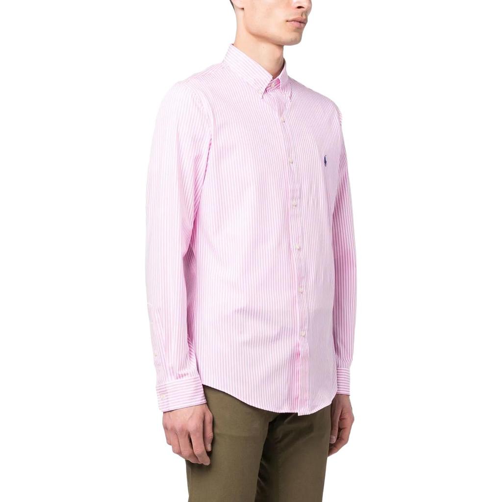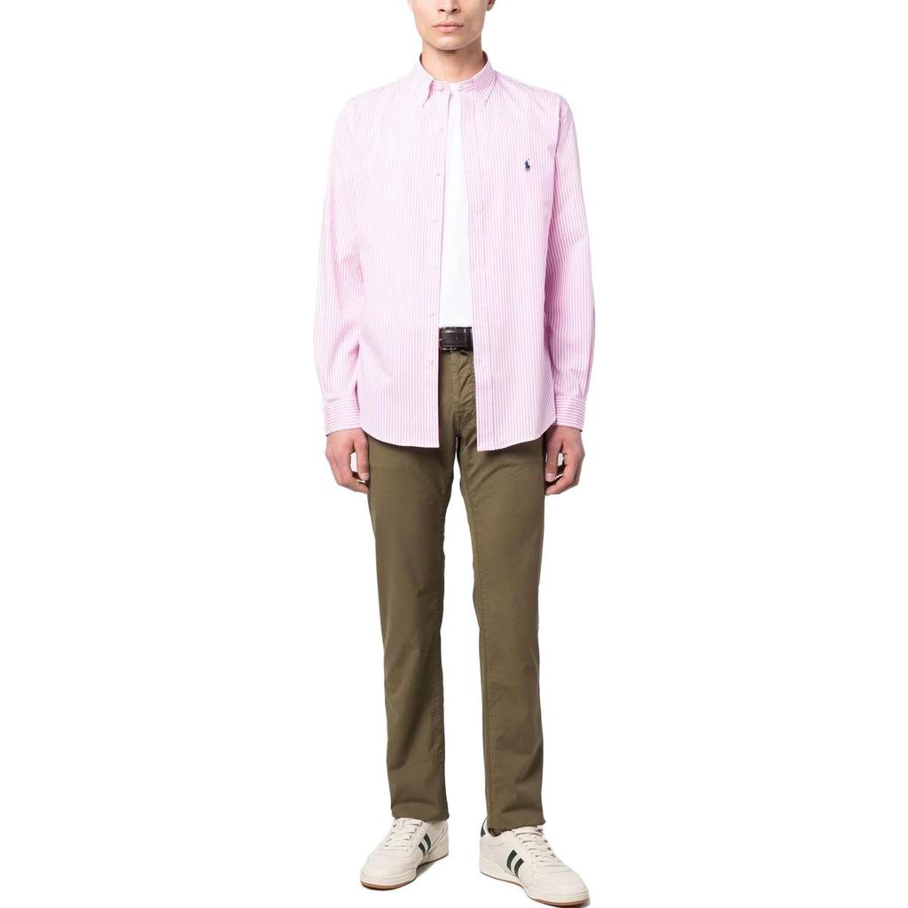 Polo Ralph Lauren SS23 Логотип Вышитый Полосатый Рубашка На Пуговицах Повседневная Мужские Рубашки Розовый 710859881-002