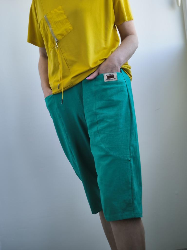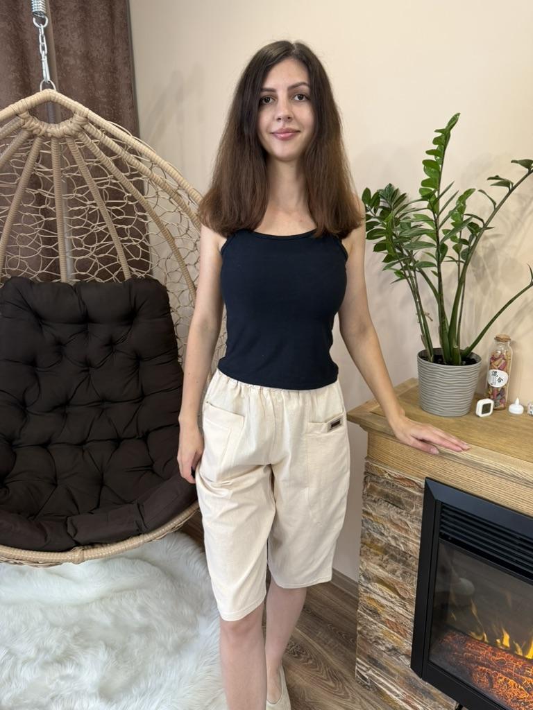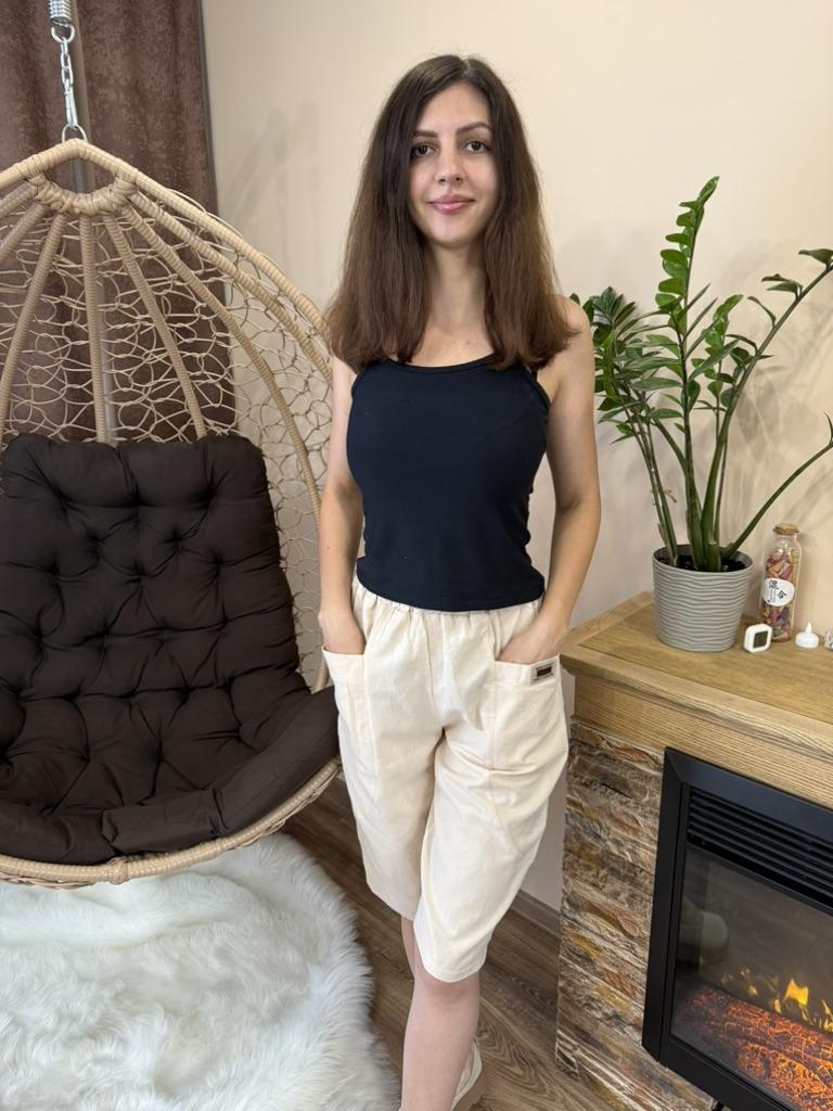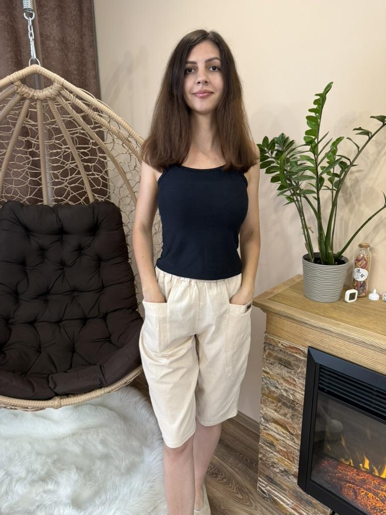 Женские летние шорты ❤️ Эти шорты выполнены из смеси хлопка и льна - идеальный вариант для теплого времени года. Натуральный состав обеспечивает отличную воздухопроницаемость и комфорт даже в жару. Материал приятный на ощупь, не раздражает кожу и хорошо держит форму после стирки. Модель выполнена в расслабленном стиле - свободный крой, укороченная длина и широкая резинка на талии делают посадку очень удобной. Особого внимания заслуживают вместительные карманы спереди - практичное и стильное решение. Яркий бирюзовый цвет освежает образ и делает шорты универсальными для повседневной носки или отдыха. Замеры вещи в размере L: ОТ - 62 см, ОТ в растянутом виде - 96 см, Длина - 67 см, ОБ - 112 см, Глубина - 36 см. Обязательно рекомендую 👍 Удачных покупок ❤️ Ваша Вика 😊