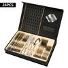 1:Отличный выбор для большинства семей Набор столовых приборов из 24 частей для 6 человек Дружелюбная посуда премиум-класса из нержавеющей стали, край продукта был тщательно отполирован, обеспечивая безопасность ваших губ. Идеально подходит для кухонь, отелей и ресторанов. Этот высококачественный набор столовых приборов из нержавеющей стали удобен в удержании и долговечен для повседневного использования, коллекционирования, вечеринок, кемпинга и т. Д.