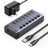 Chcesz zwiększyć możliwości swojego komputera? Teraz to możliwe! Hub UGREEN CM481 zapewnia 7 portów USB 3.0, z czego 4 umożliwiają szybkie ładowanie BC 1.2. Za jego pomocą możesz też przesyłać pliki z prędkością do 5 Gbps. Produkt jest przyjazny użytkownikom, wydajny, lekki i łatwy w transporcie. W skład zestawu wchodzi też zasilacz z kablem USB-C.