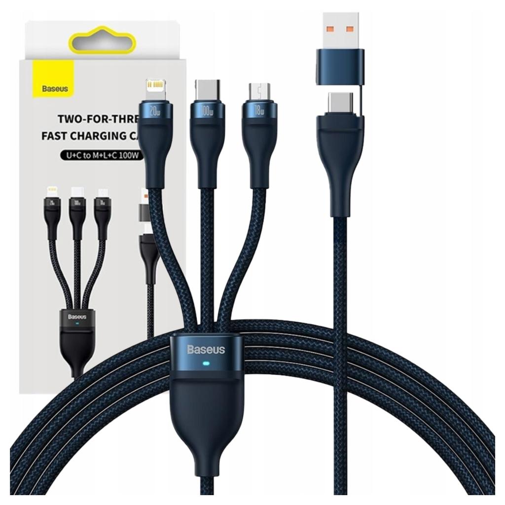 Kabel USB 3w1 Baseus Flash Series 2, USB-C + micro USB + Lightning, 100W, 1.2m
