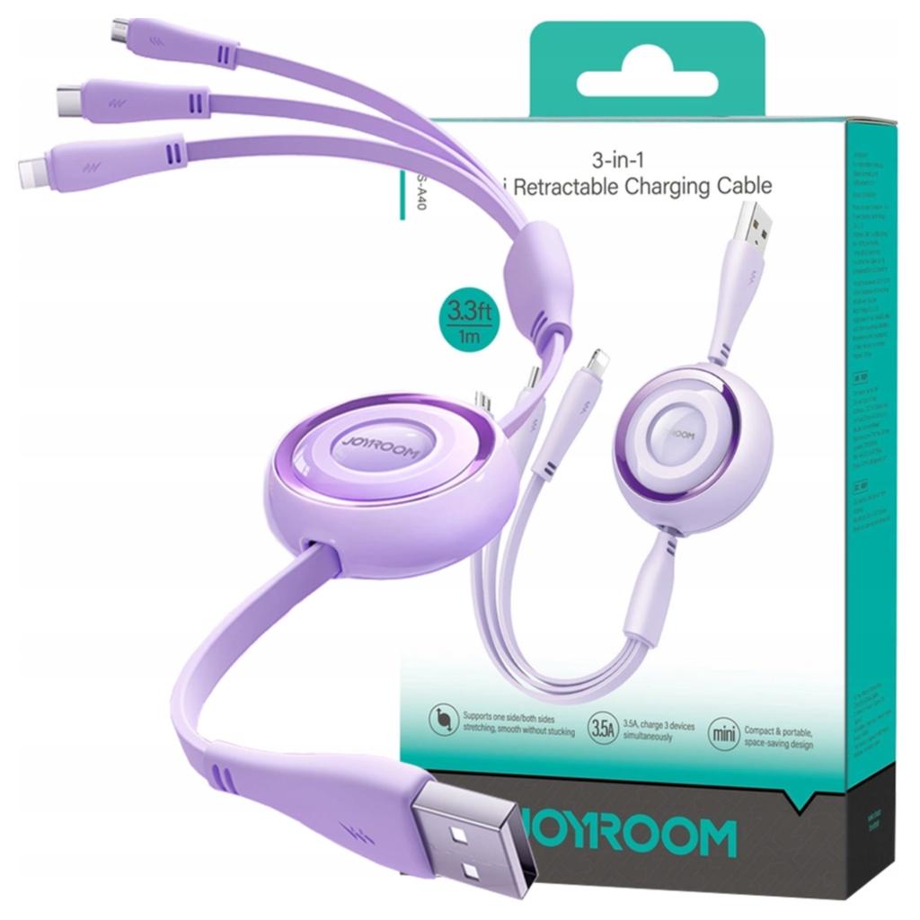Kabel 3w1 Joyroom Colorful USB do USB-C/Lightning/Micro USB 3.5A, 1m (fioletowy)