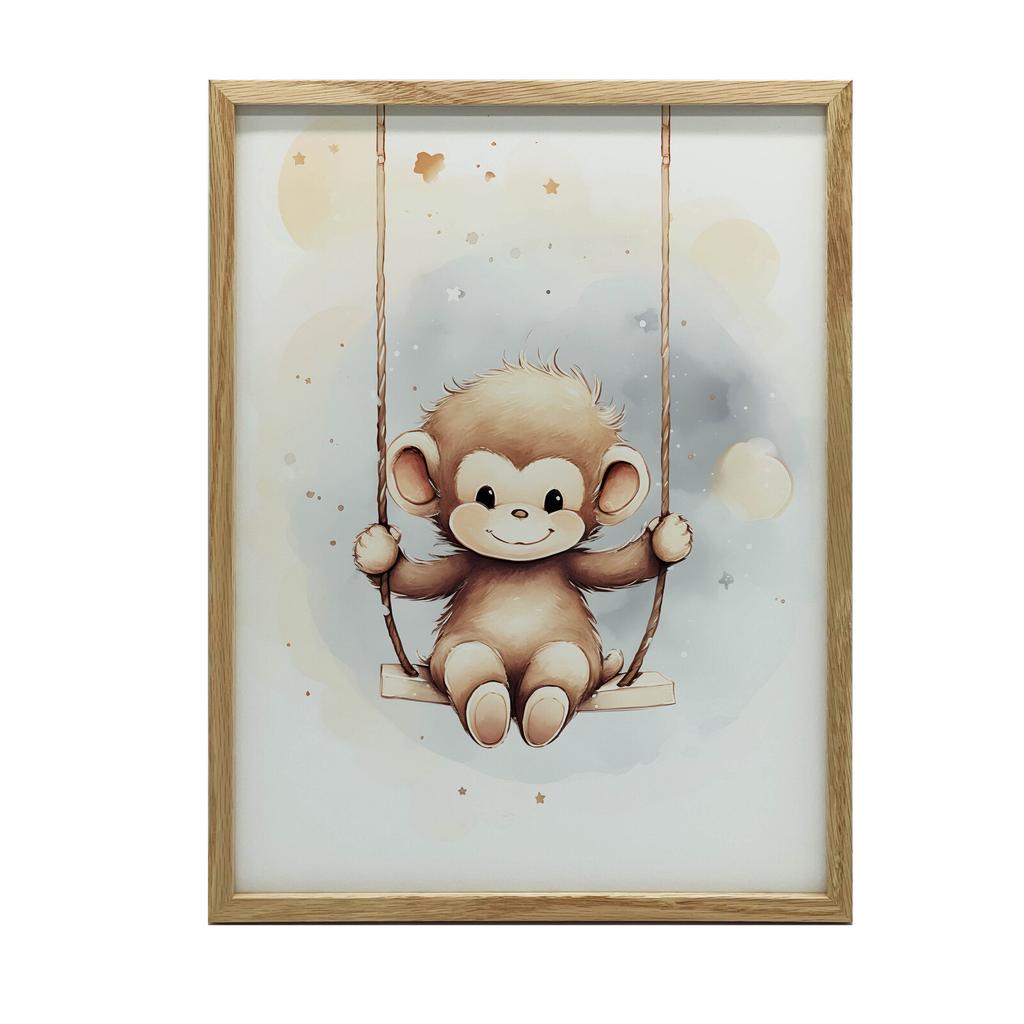 1x Małpka na huśtawce, 70x100 cm, rama drewniana ciemny brąz, papier matowy 230 gsm