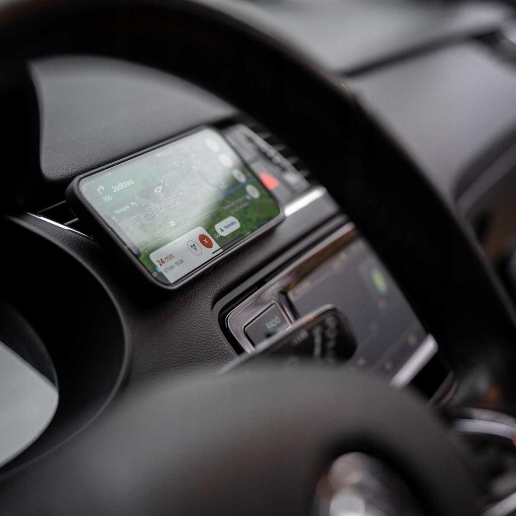 Magnetyczny system mocowania zapewnia pewność i bezpieczeństwo telefonu podczas jazdy