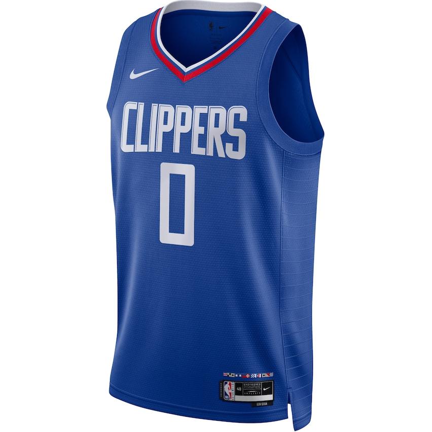 Nike Футболка баскетбольная унисекс Los Angeles Clippers с принтом логотипа и букв, номером, V-образным вырезом, синяя DN2139-495