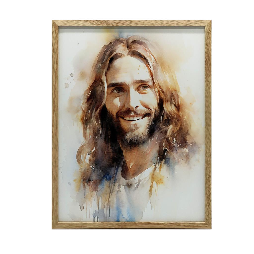 1x Uśmiechnięty Jezus, 30x40 cm, rama aluminiowa złota, papier matowy 230 gsm