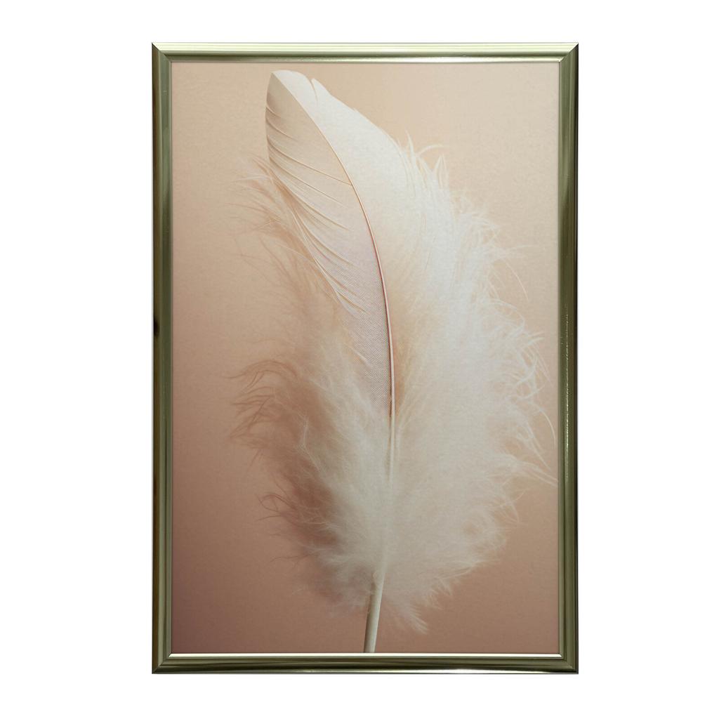 1x Pióro, 30x40 cm, rama aluminiowa złota, papier matowy 230 gsm