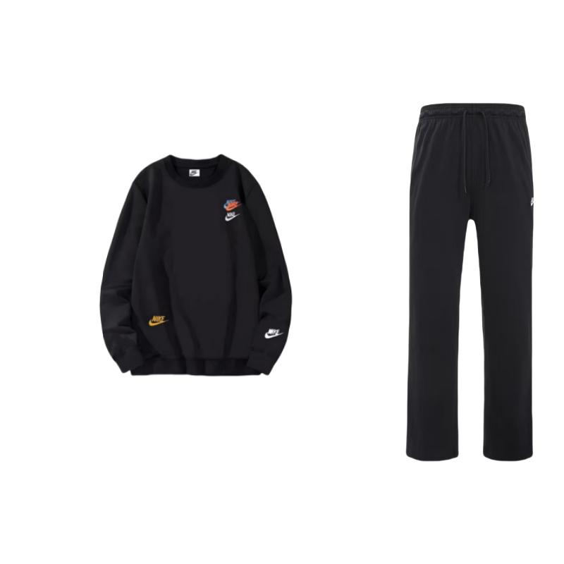 Nike Свободный крой, круглый вырез, длинный рукав, толстовка, однотонный цвет, завязка на средней талии, длинные брюки, повседневный спортивный комплект, мужские комплекты, черный цвет FQ4333-010+DJ6915-010