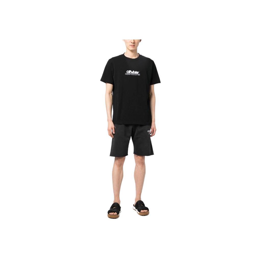 Off-White Толстая футболка с вышитым логотипом, черная/белая, мужская уличная одежда OMAA027S23JER0081001