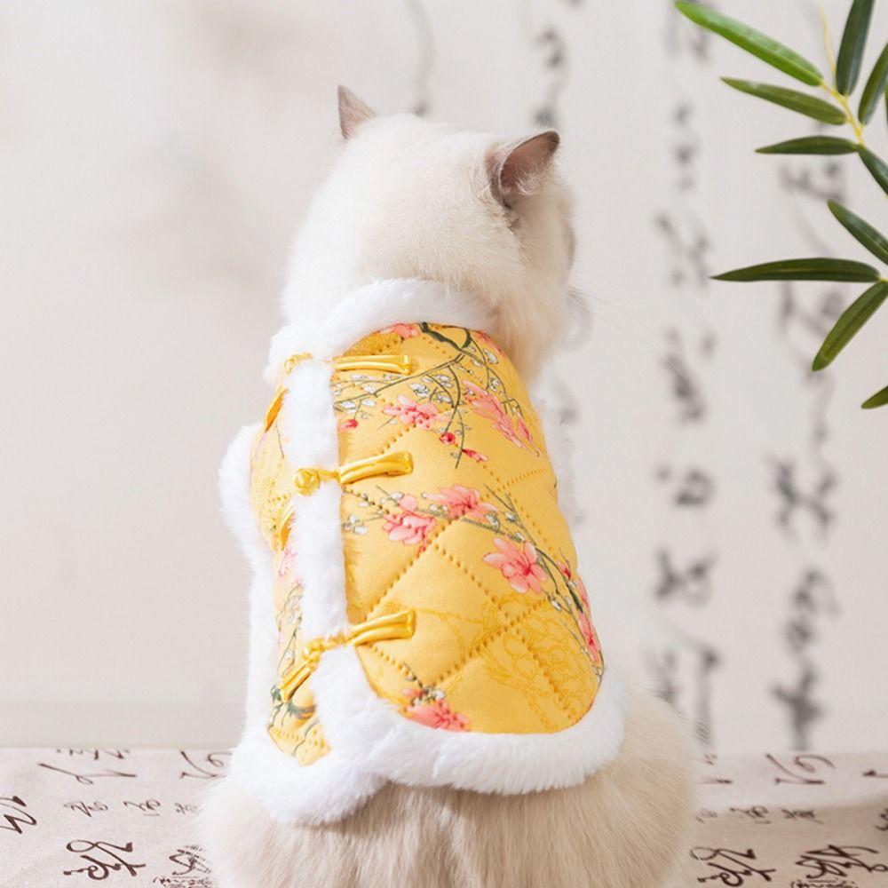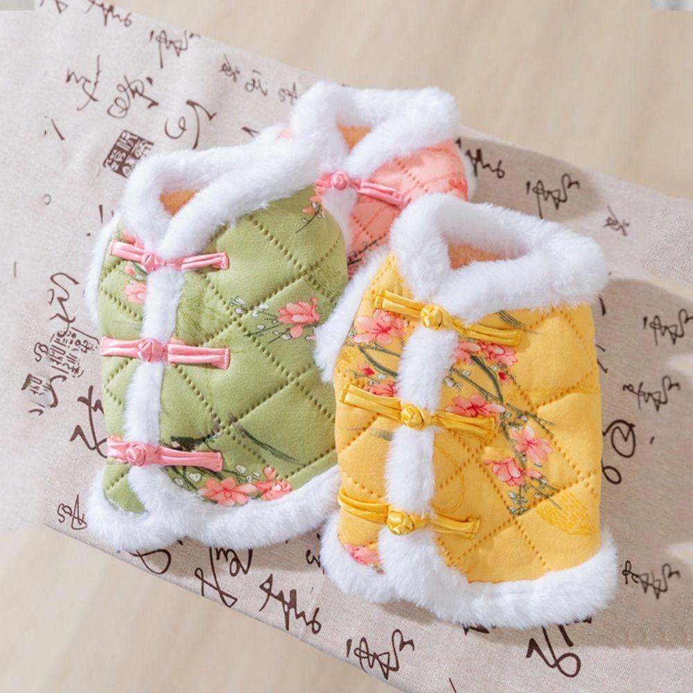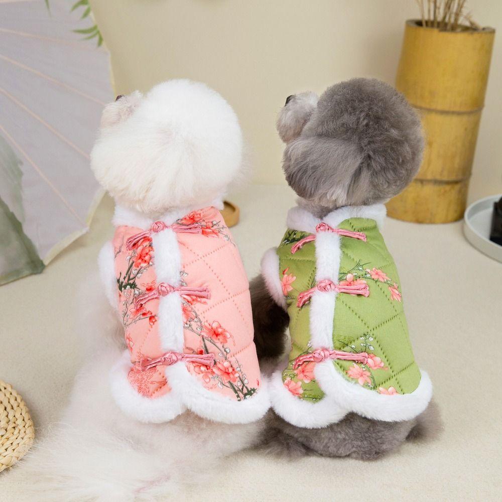 Утепленное зимнее пальто для домашних животных из полиэстера, одежда для щенков, винтажный костюм для домашних животных Tang для собак, чихуахуа