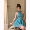 Blue Halter Backless Dress Women Summer Fashion Sleeveless Sweet Short Elegant Fairy Dress — купить товар онлайн с бесплатной доставкой по всему миру!