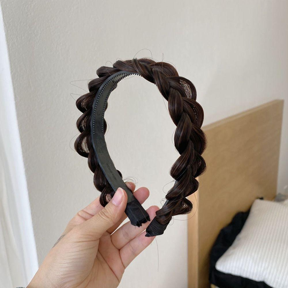 Стильный плетеный ободок для волос, термостойкий парик, обруч для волос с закрученной косой, зубчатый нескользящий ободок для волос, парик