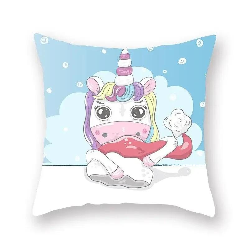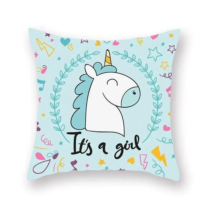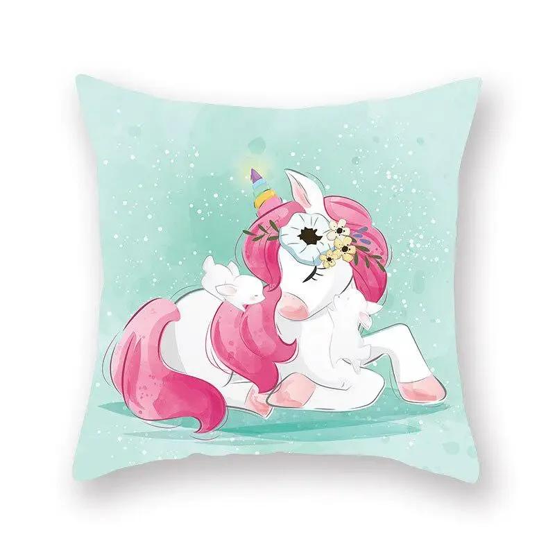 Наволочка с принтом единорога, украшение для вечеринки, день рождения, персиковая наволочка