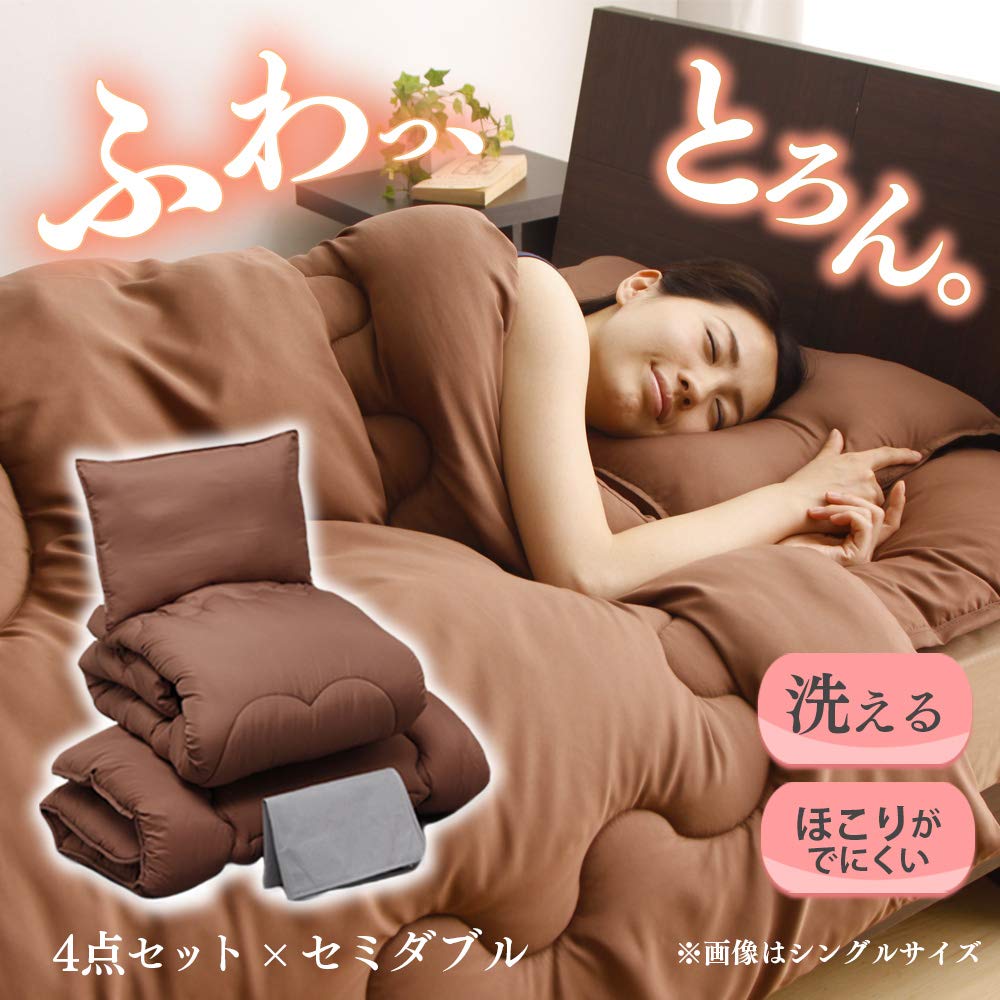 IRIS PLAZA Полностью стираемый футон из полого полиэстера поставляется в аккуратной упаковке для хранения, с гладкой и влажной отделкой «персиковая кожа», коричневый набор из 4 предметов, полуторный, хлопок,