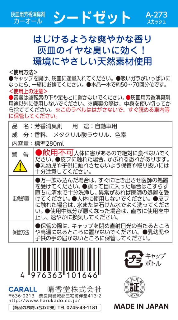 HARUKADO Carall Автомобильный освежитель воздуха Seed Z Squash 280 мл A-273