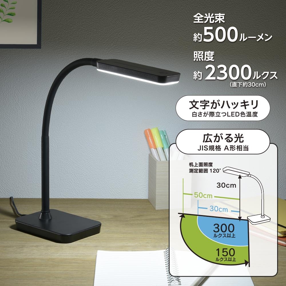 Светодиодная настольная лампа Ohm Electric Тип A Эквивалентный дневному свету 500 люменов Настольная подставка Подставка для учебы Черный OHM DS-LS16D-K 06-3846