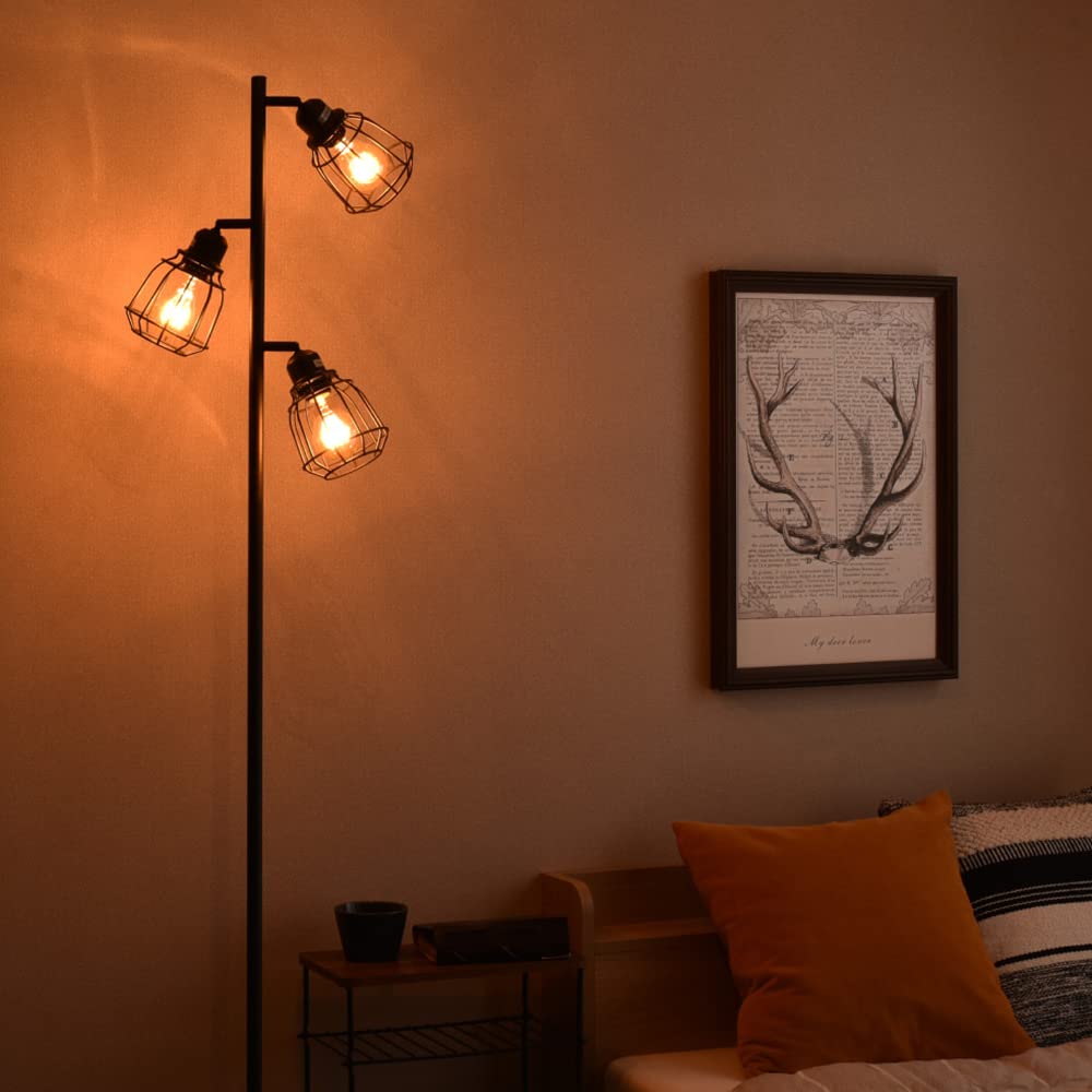 Пункт 1. [Создайте высококачественную комнату с 3-ламповым торшером изысканного дизайна] Металлическая решетка, закрывающая лампочку, является абажуром, а плафон выполнен из матовой текстурированной стали, напоминающей рабочий свет. В отличие от обычного прожектора, наслаждаются самим источником света, а не освещением объекта.. Основной корпус изготовлен из стали и имеет матовый сетчатый абажур, который можно использовать в качестве акцента в интерьере.. При включении сетчатый абажур красиво освещает стену светом и тенью, делая атмосферу комнаты еще более стильной! Пункт 2. [Свободно регулируемая головка для точечного освещения] Каждый из трех сетчатых плафонов можно перемещать независимо и вращать примерно на 300 градусов вручную. Тень, которую отбрасывает абажур, меняется в зависимости от угла его наклона, поэтому вы можете отрегулировать ее практически под любым углом, который захотите.. Изменяя угол сетчатого абажура, свет и тень от лампы будут отражаться на потолке и стенах, создавая стильную атмосферу.. Пункт 3. [Непрямое освещение, которое позволяет наслаждаться разным видом, меняя используемые лампочки] Тень, которую отбрасывает светильник, варьируется в зависимости от используемой лампочки и угла наклона абажура, и обычно это лампа накаливания.