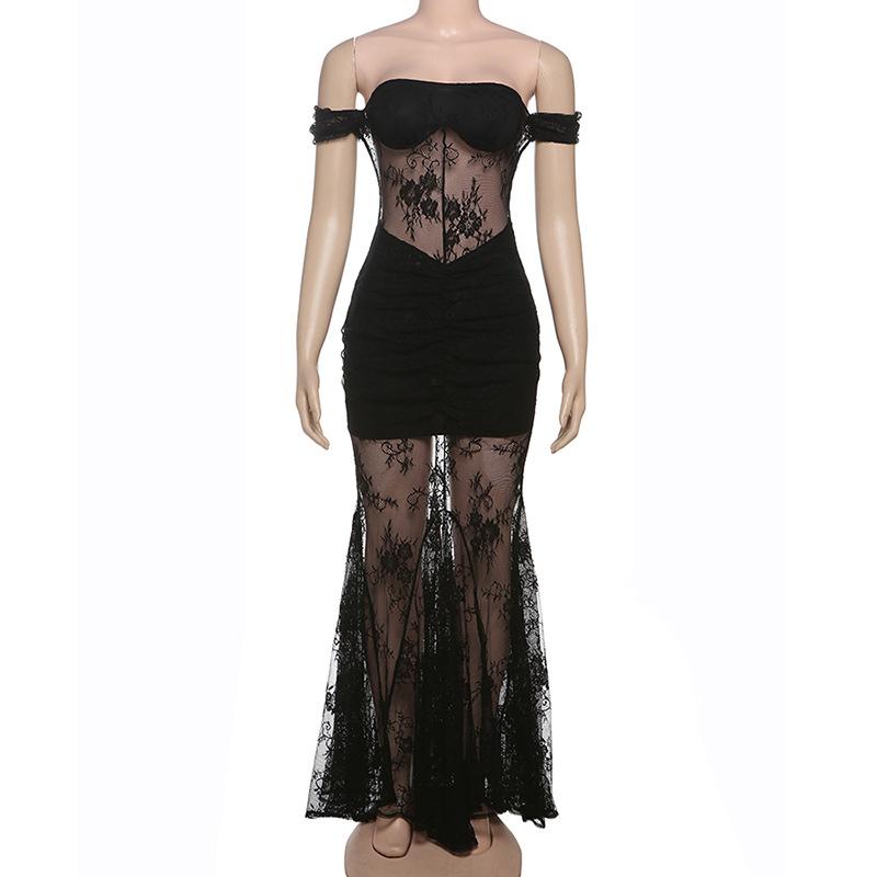 Кружевное сексуальное прозрачное длинное платье женское элегантное ажурное платье с открытой спиной и принтом на высокой талии вечернее платье женское однотонное макси платье — купить товар онлайн с бесплатной доставкой по всему миру!