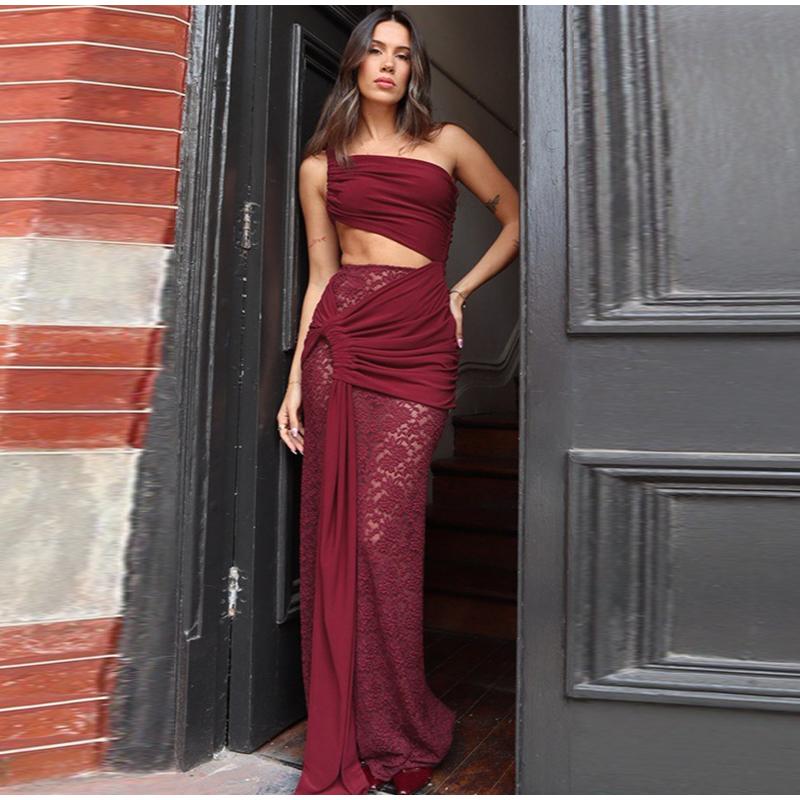 Комплект из 2 предметов: кружевная длинная юбка, женский укороченный бандажный топ и сексуальная макси-юбка, летние повседневные женские наряды