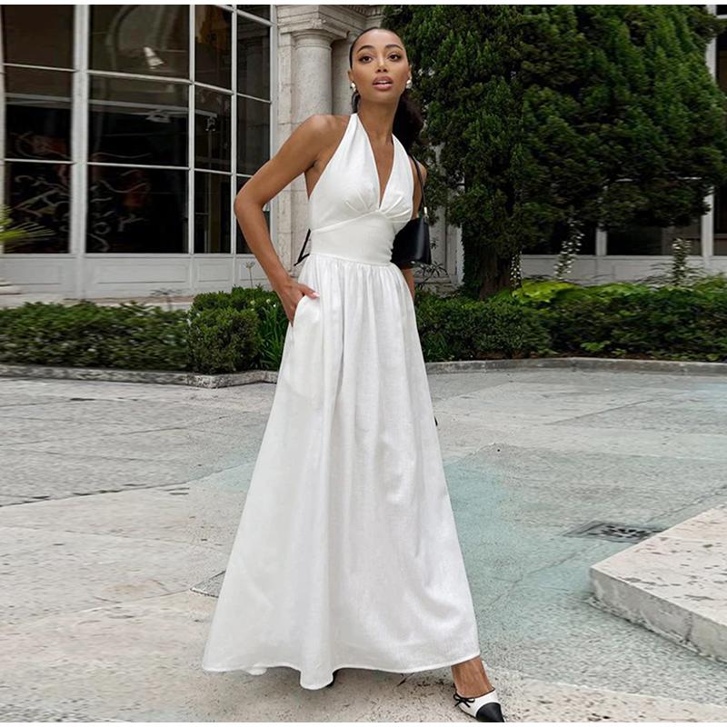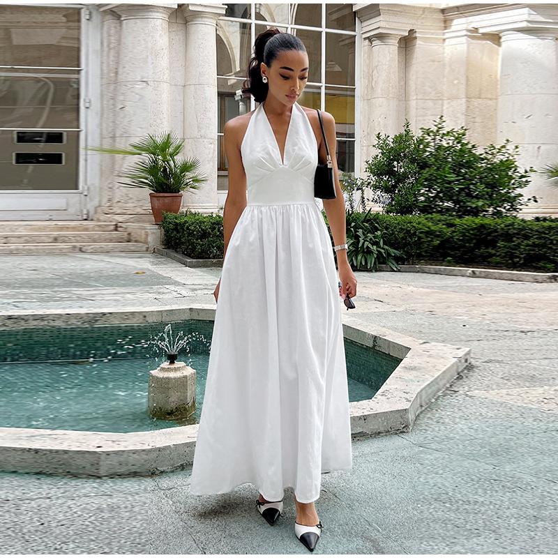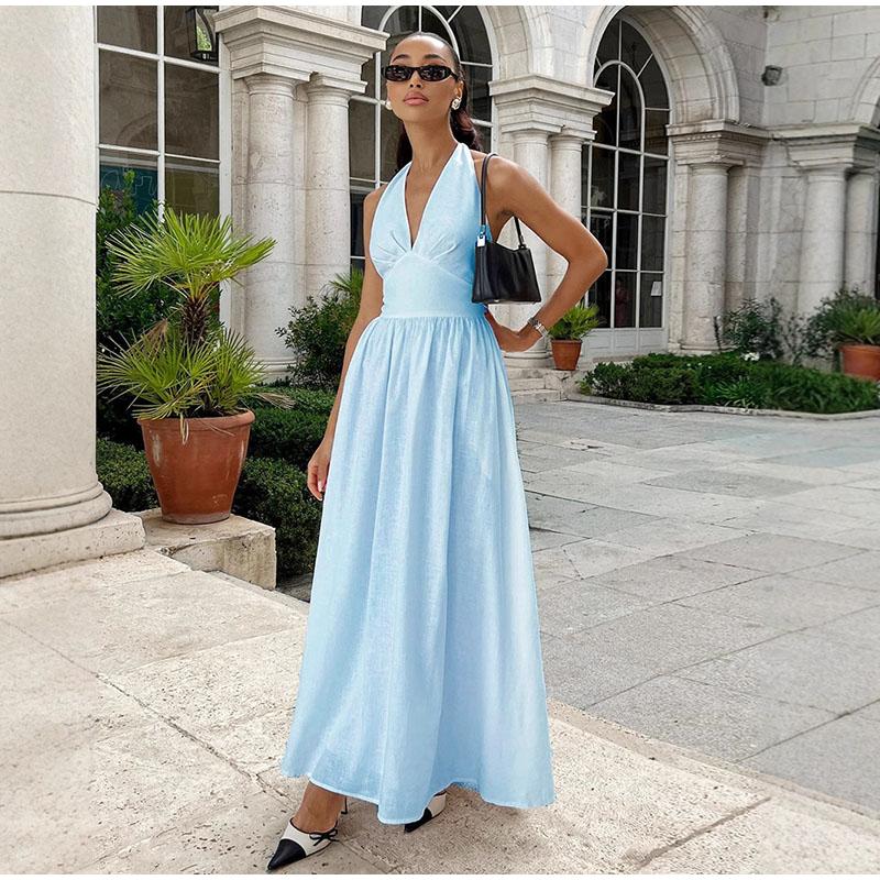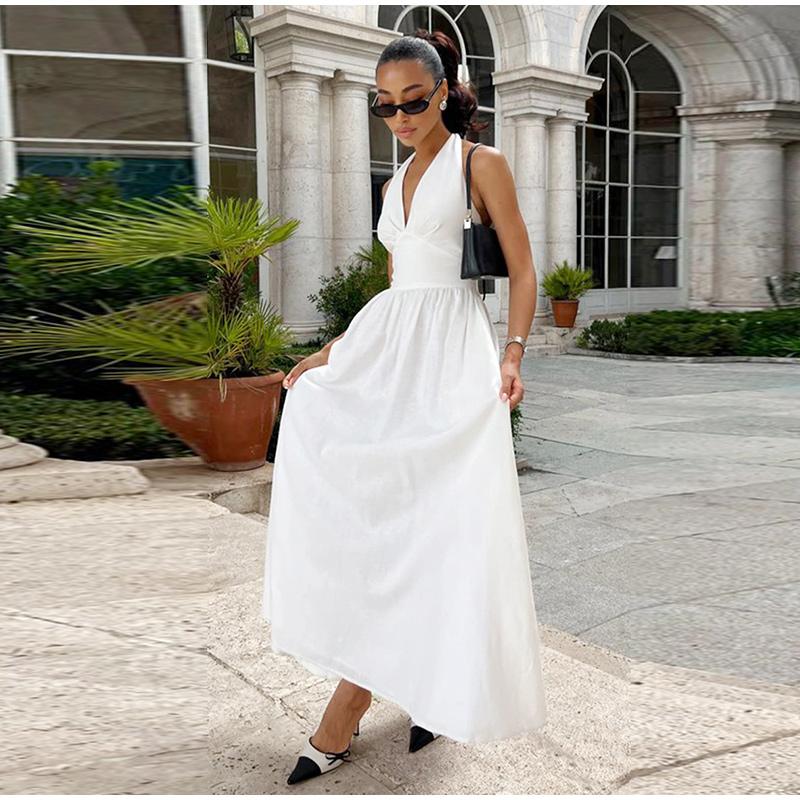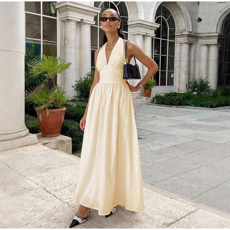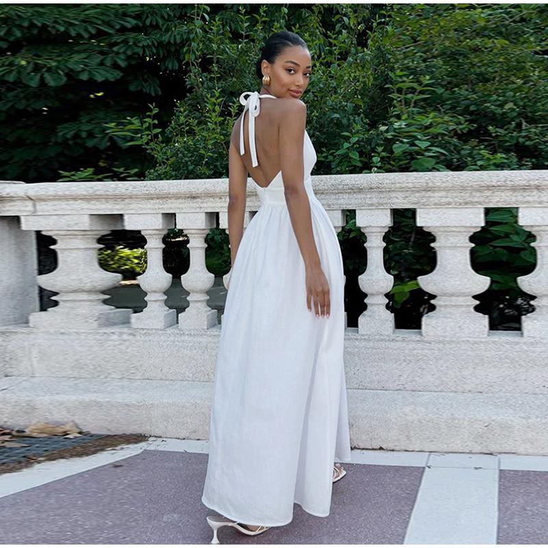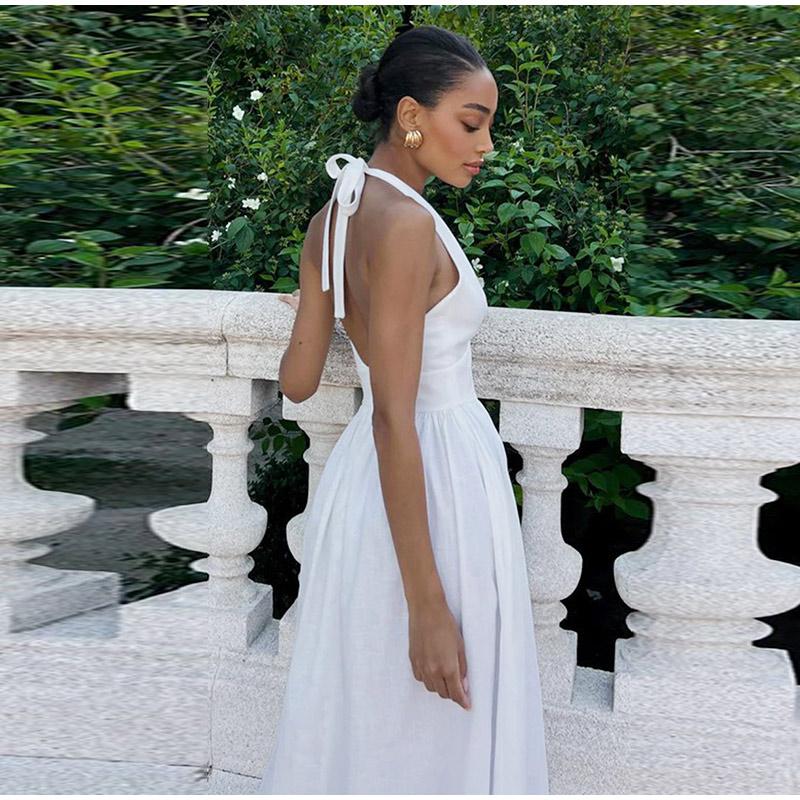 Женское летнее хлопковое длинное платье без рукавов сексуальное с V-образным вырезом бохо макси платье свободного фасона длинное платье одежда