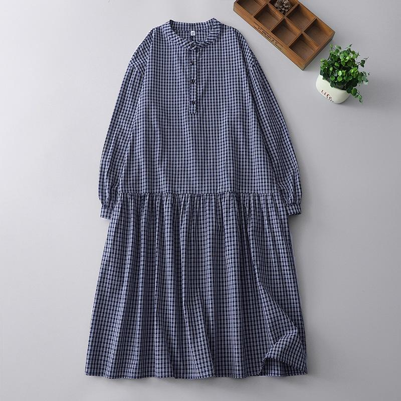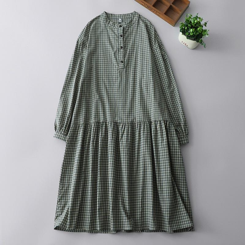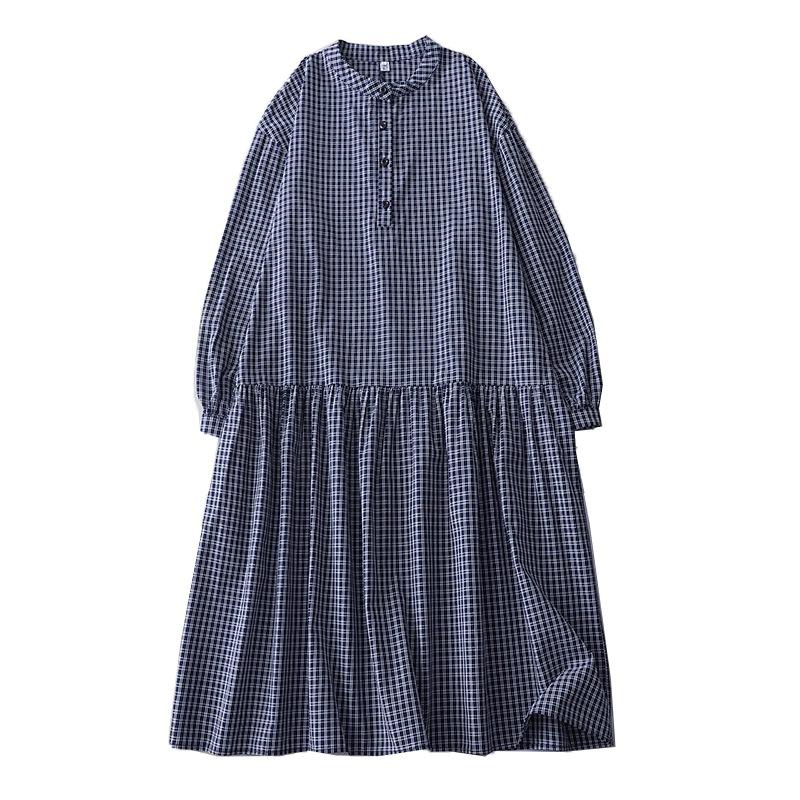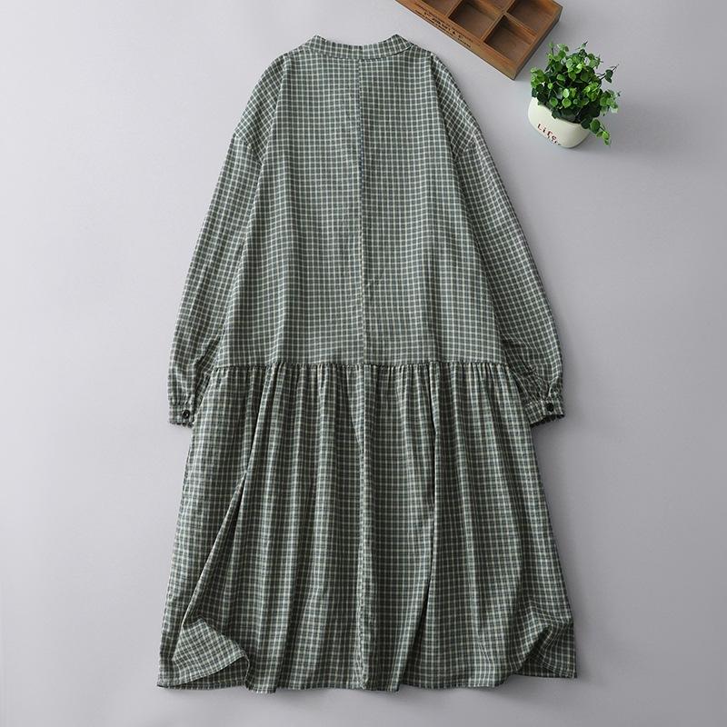 2025 весна новое клетчатое платье ретро повседневное свободное и тонкое платье с воротником-стойкой и длинными рукавами средней и длинной длины