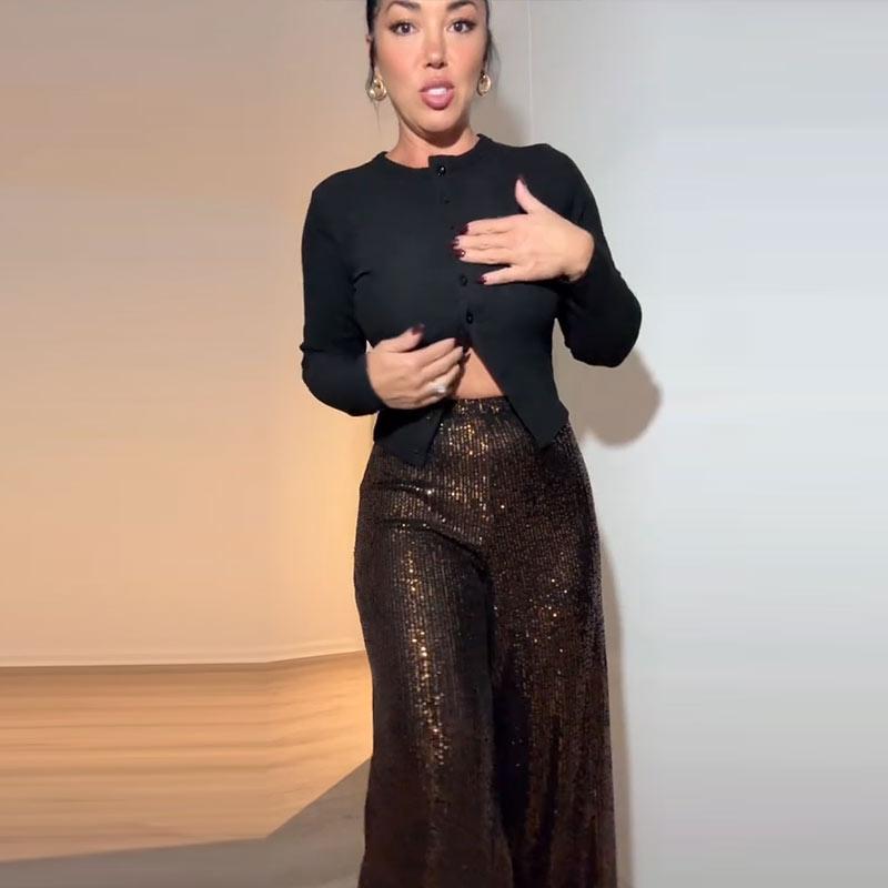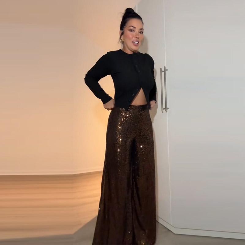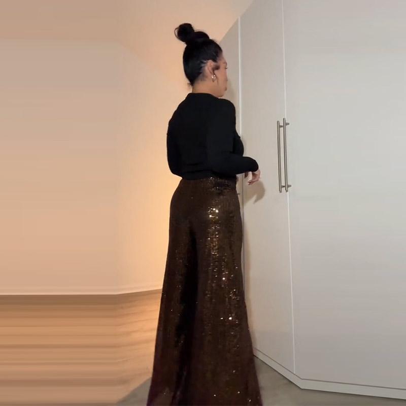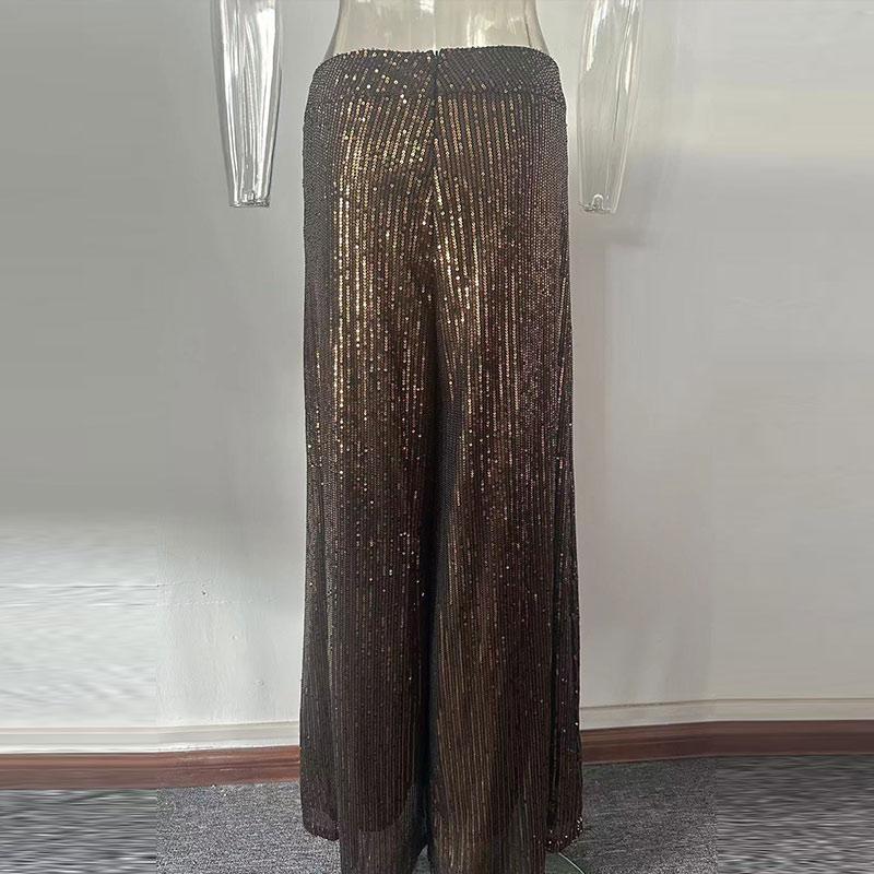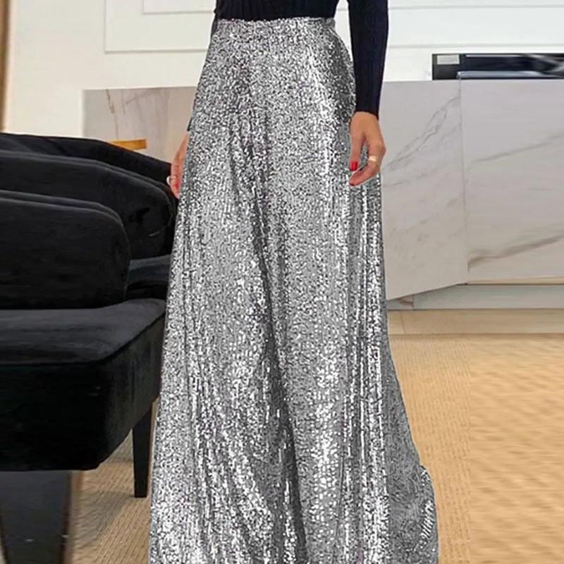 Элегантные длинные брюки с блестками, женские модные свободные брюки с высокой талией и драпировкой, весна-осень, повседневные широкие брюки однотонного цвета для вечеринок