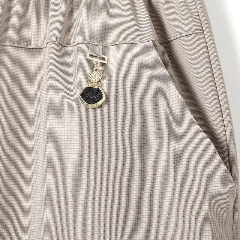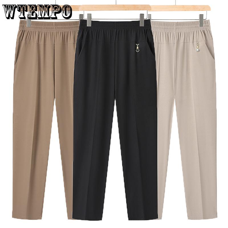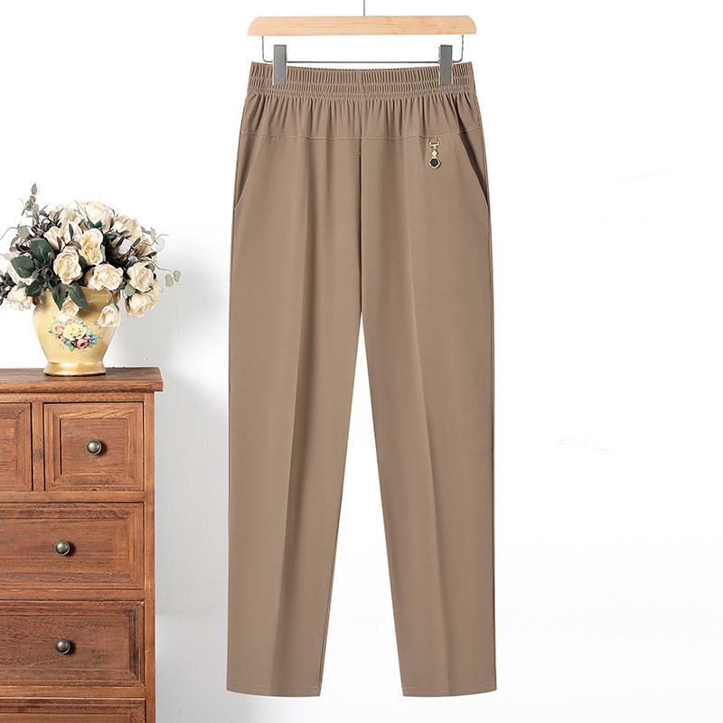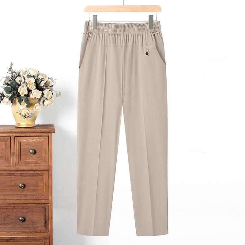 Летние тонкие брюки для женщин среднего и пожилого возраста. Брюки для мам. Прямые брюки больших размеров. Укороченные брюки из ледяного шелка для бабушки.