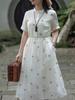 Вышитое хлопково-льняное платье-рубашка женское 2025 лето новая легкая роскошь высокий класс отложной воротник короткий рукав темперамент длинное платье