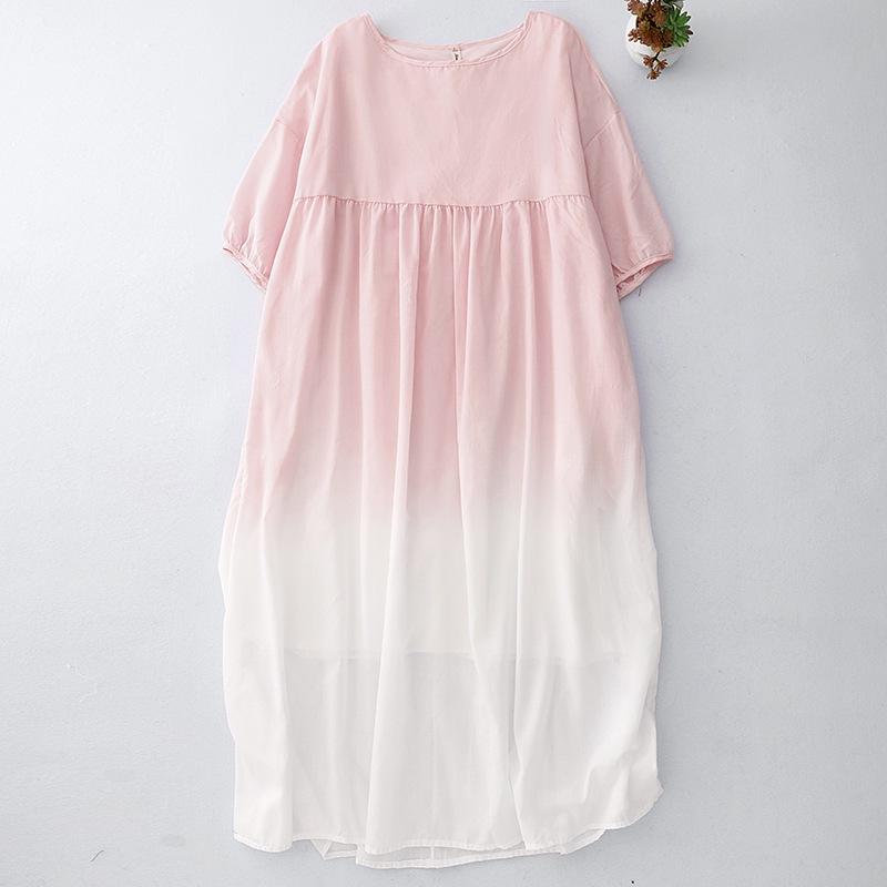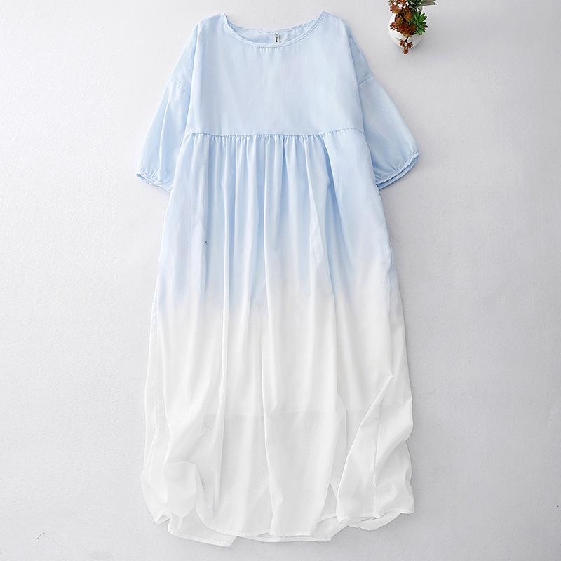 2025 лето новый карман двухслойный праздничный ветер градиент цвета свободное платье феи женское круглый вырез рукав три четверти длинное платье