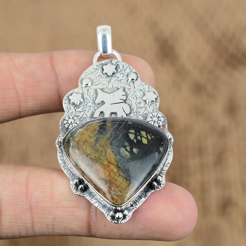 Натуральный камень Яшма Пикассо Подвеска Единорог Черный Серебро 925 пробы — купить товар онлайн с бесплатной доставкой по всему миру!