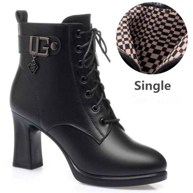 Women Genuine Leather Ankle Boots Women Plush Warm Non-slip Snow Boots Ladies High Heels Shoes Woman Thick-heeled Boots — купить товар онлайн с бесплатной доставкой по всему миру!