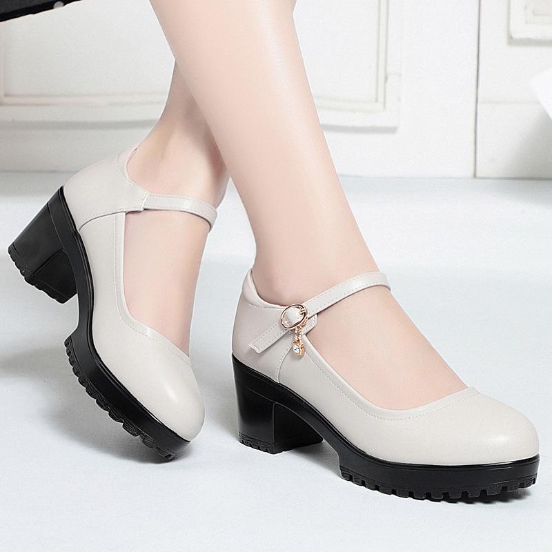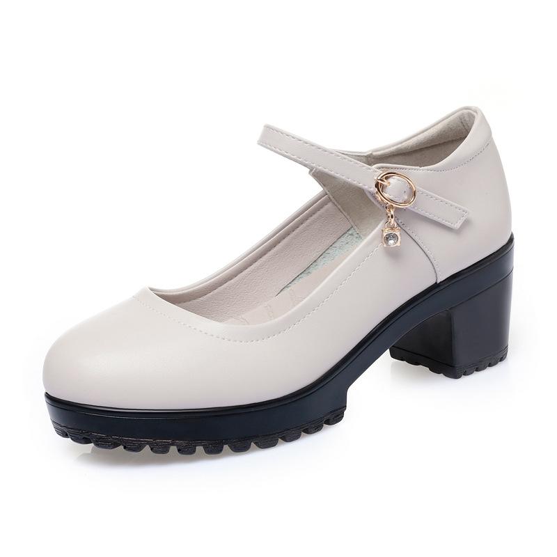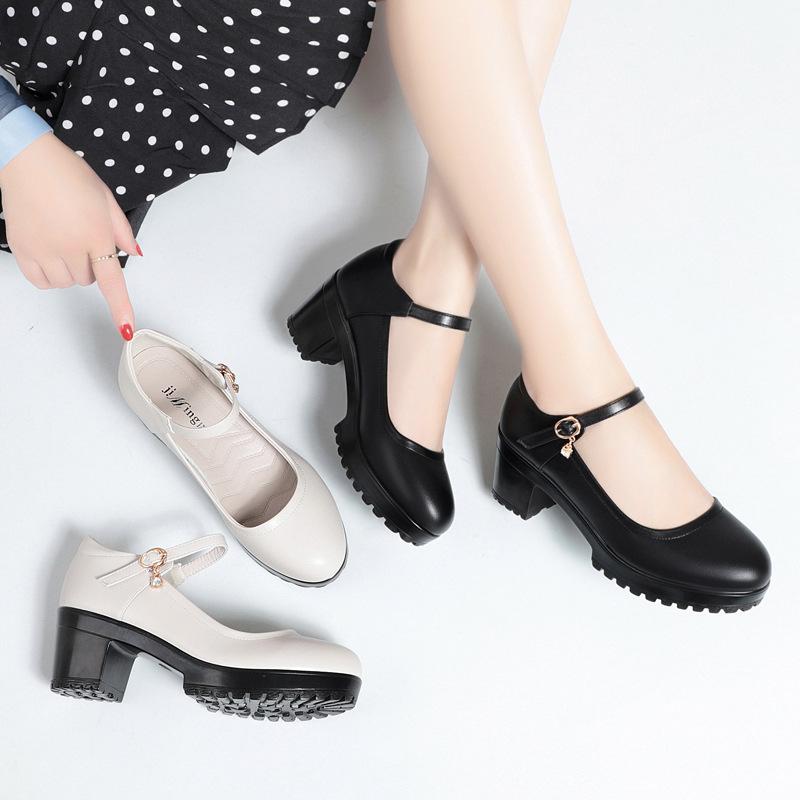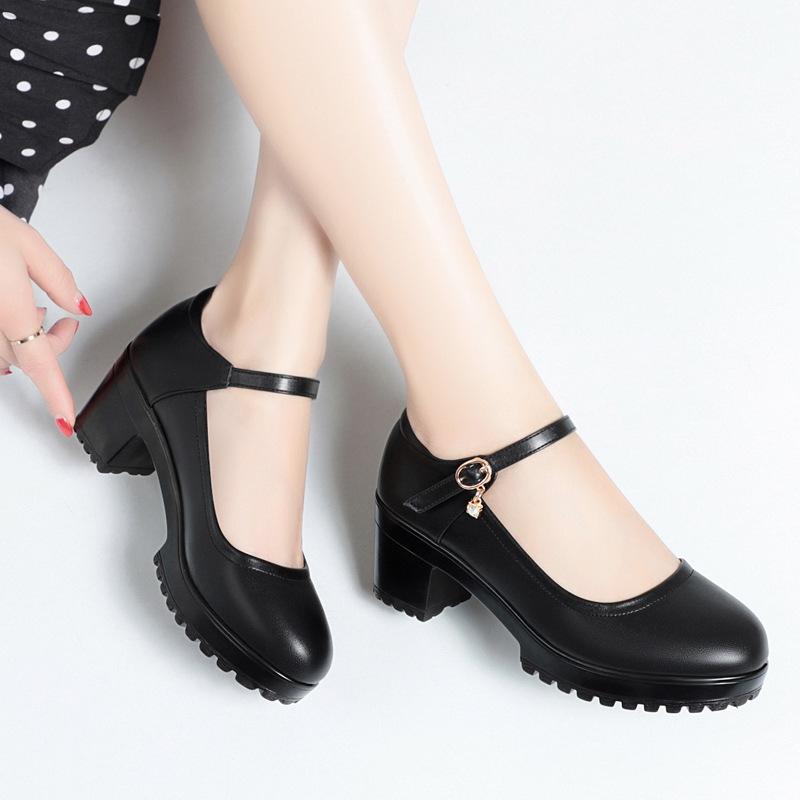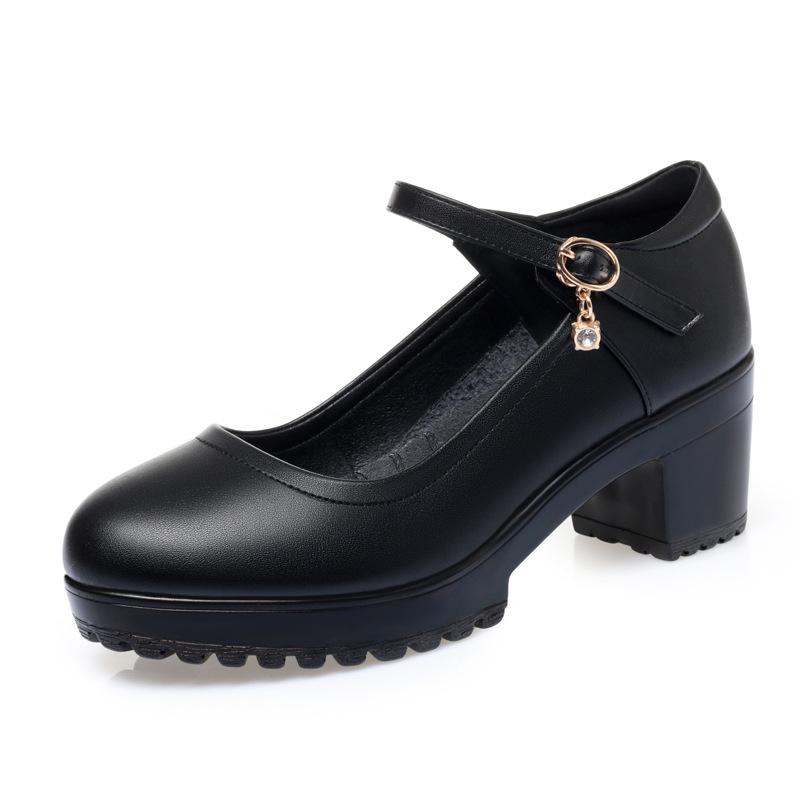 Туфли из натуральной кожи, женские туфли-лодочки с круглым носком, женские туфли на высоком каблуке, нескользящие, с удобной пряжкой, черные, размер 35-41