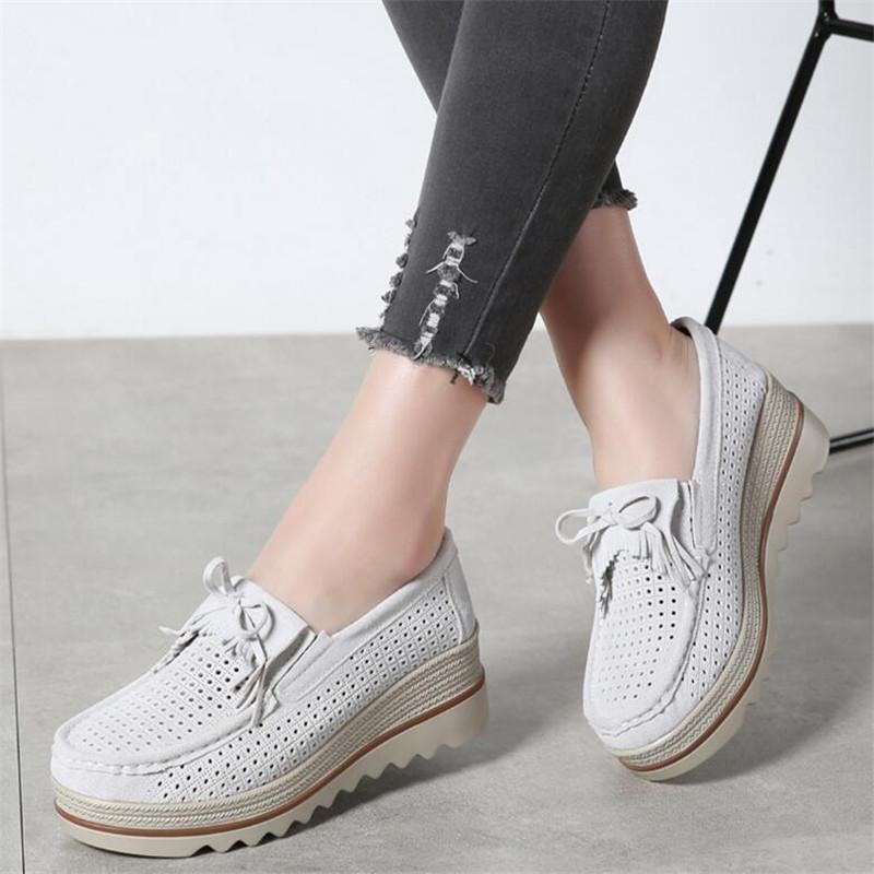 2025 Весна Женская обувь на платформе Кроссовки на плоской подошве Повседневная женская обувь из натуральной кожи Мокасины Туфли на танкетке Мокасины