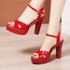 Модные босоножки на платформе и блочном каблуке, женские свадебные туфли 2025 года, летние босоножки на каблуке 10 см, женские туфли-лодочки, большой размер 32-43