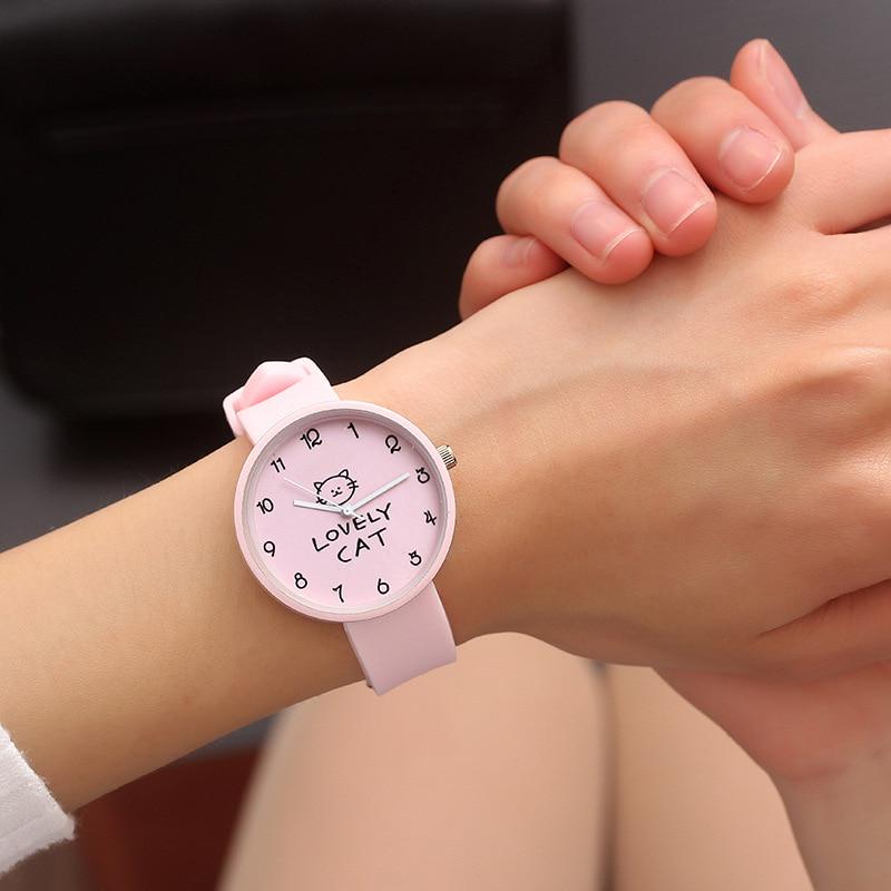 Детские кварцевые часы с героями мультфильмов, силиконовые, карамельного цвета, студенческие часы, часы для девочек, модные часы с кошкой, детские наручные часы