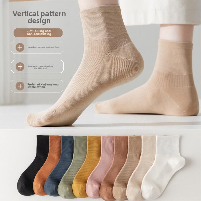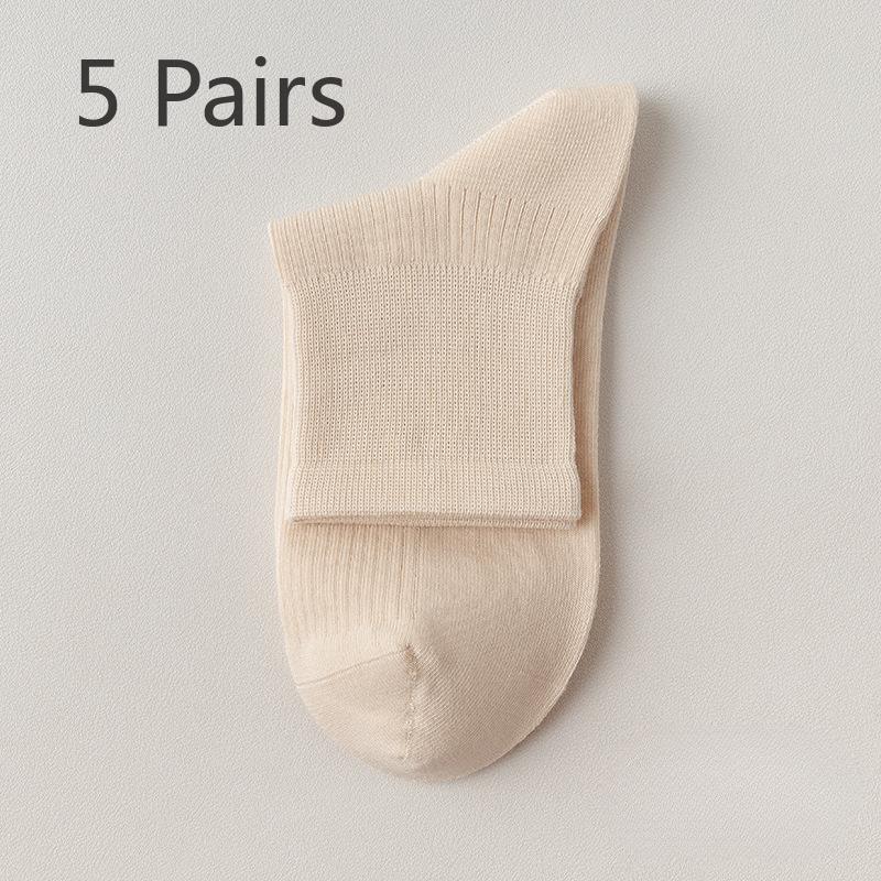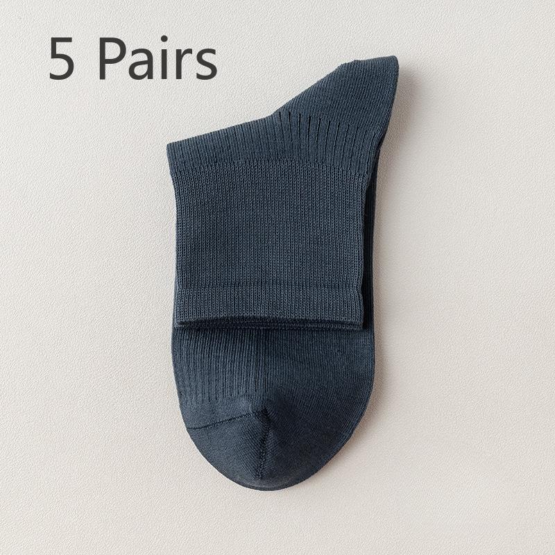5 пар хлопковых носков до середины икры на весну, лето и осень. Антибактериальные носки из чесаного хлопка с защитой от запаха. Удобные носки из хлопка без косточек.