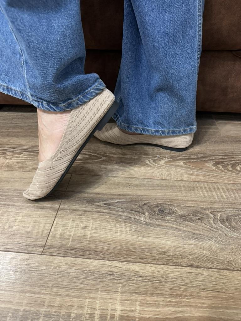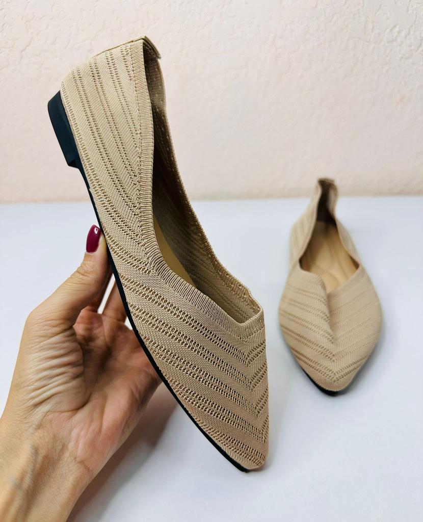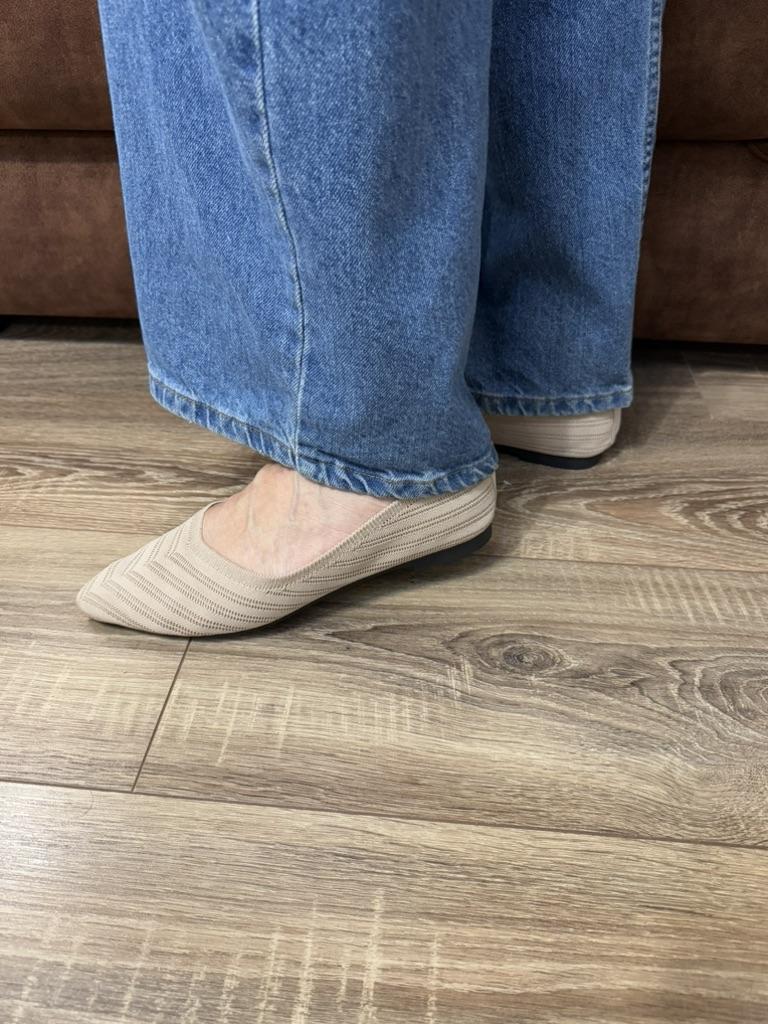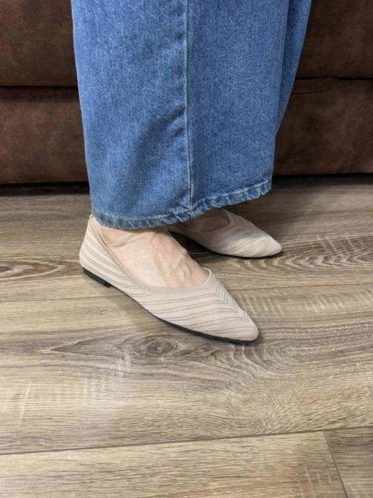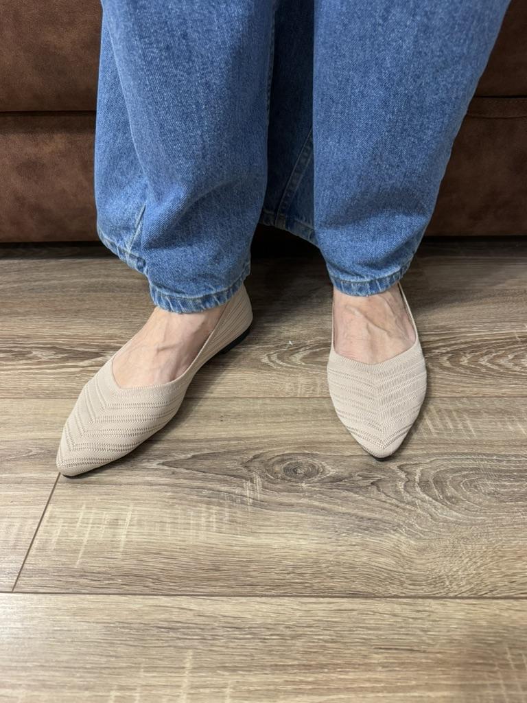 Пара балеток-слипонов, которые сочетают комфорт и элегантный дизайн. 🔸На выбор несколько расцветок, размеры: 36-43. На мне 38. По стельке 24,5 см. 🔸Верх выполнен из вязаного (трикотажного) материала в бежево-коричневой гамме, что делает их очень легкими и дышащими – идеальными для теплой погоды. Узор вязки напоминает шеврон (зигзаг), что придает текстуре глубину и интерес. 🔸Балетки имеют актуальный острый носок, который визуально удлиняет ногу и придает образу более изысканный и формальный вид по сравнению с традиционными круглыми балетками. 🔸Благодаря нейтральному цвету и элегантному стилю, эти балетки легко сочетаются как с повседневной одеждой (джинсы, брюки), так и с более официальными нарядами (платья, юбки) для офиса или летних мероприятий. Рекомендую 👍 Ставлю ⭐ ⭐ ⭐ ⭐ ⭐ Спасибо продавцу ❤️ и Joom ❤️