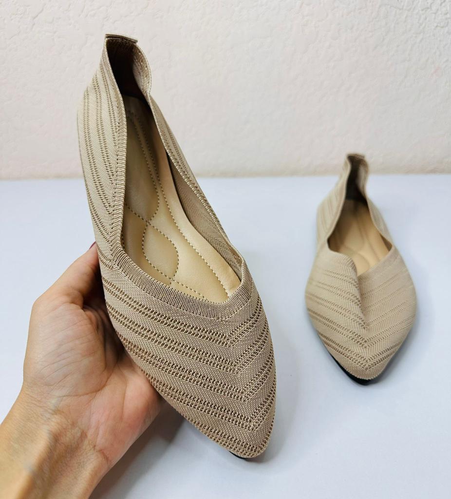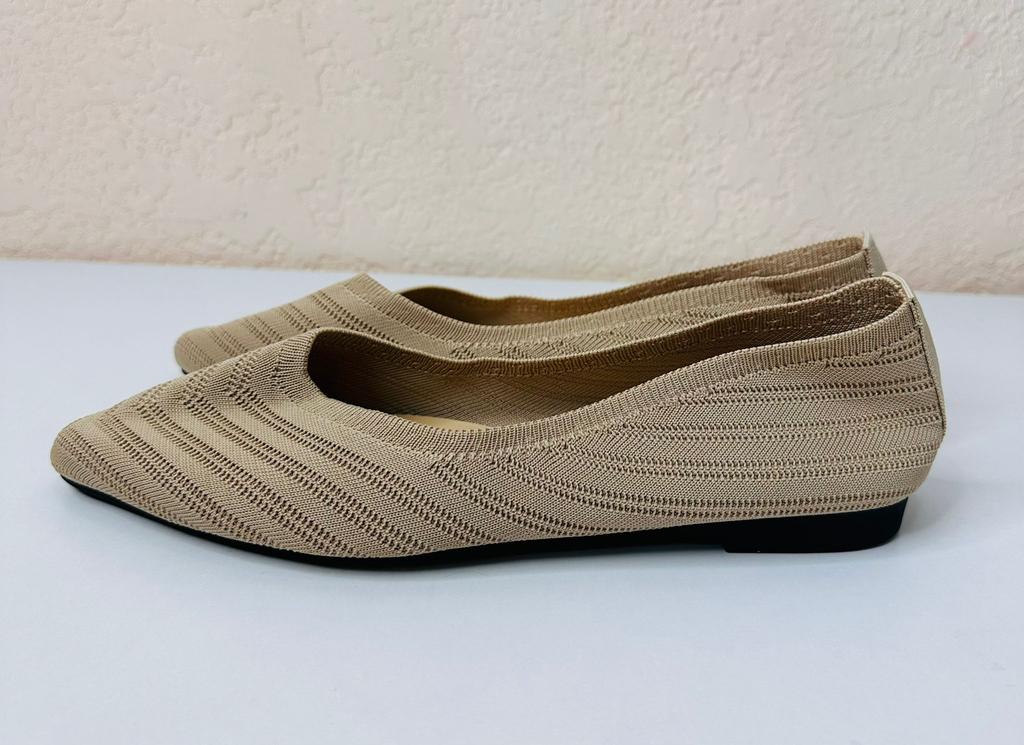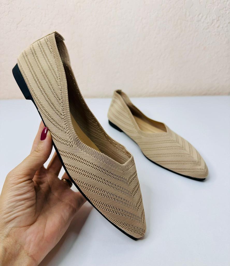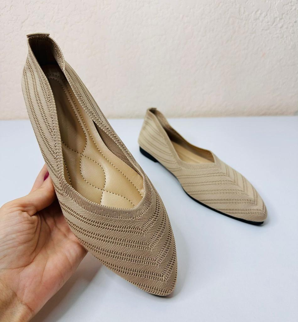 Пара балеток-слипонов, которые сочетают комфорт и элегантный дизайн. 🔸На выбор несколько расцветок, размеры: 36-43. На мне 38. По стельке 24,5 см. 🔸Верх выполнен из вязаного (трикотажного) материала в бежево-коричневой гамме, что делает их очень легкими и дышащими – идеальными для теплой погоды. Узор вязки напоминает шеврон (зигзаг), что придает текстуре глубину и интерес. 🔸Балетки имеют актуальный острый носок, который визуально удлиняет ногу и придает образу более изысканный и формальный вид по сравнению с традиционными круглыми балетками. 🔸Благодаря нейтральному цвету и элегантному стилю, эти балетки легко сочетаются как с повседневной одеждой (джинсы, брюки), так и с более официальными нарядами (платья, юбки) для офиса или летних мероприятий. Рекомендую 👍 Ставлю ⭐ ⭐ ⭐ ⭐ ⭐ Спасибо продавцу ❤️ и Joom ❤️