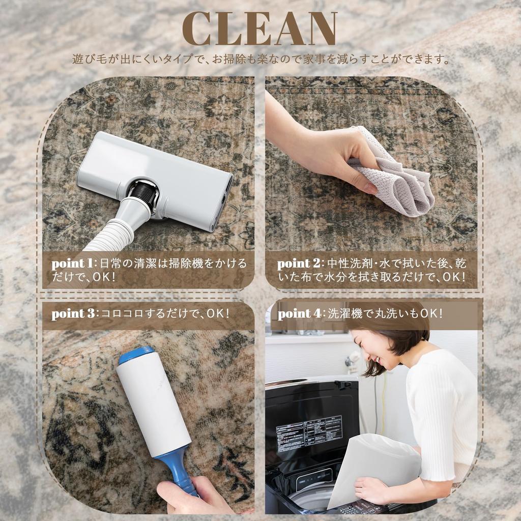 In the garden, even if pet hair gets stuck, you can always keep it clean by just rolling it around. 3. You can wipe it with a damp cloth, hand wash it, or put it in a laundry net and machine wash it. 4. Please use a carpet cleaner or diluted household neutral detergent. Note 1. The carpet will be delivered folded, so there will be creases in the carpet.The creases will disappear if you unfold it for 2-3 days. 2.The color may look different from the actual product depending on the monitor environment and shooting environment. 3. Regular washing is not recommended. Washing your rug too often in the washing machine will shorten its lifespan. 4.Depending on the conditions of use, rugs that are compatible with underfloor heating may react with the flooring material, causing color transfer, discoloration, or deformation to the floor. Please check the floor under the rug once a week, avoid leaving it in place for long periods of time, and shift the rug little by little. Please be careful, especially after new construction or renovations, as reactions with flooring materials are more likely to occur. If you are laying it on a waxed floor, wait until the wax has dried thoroughly before laying it on.